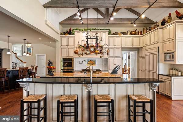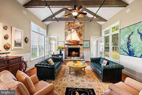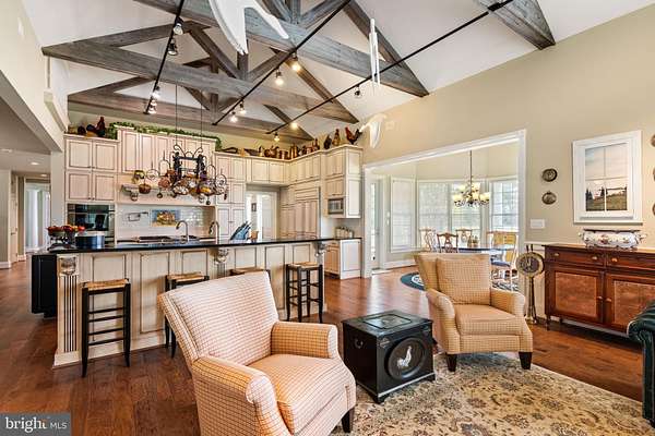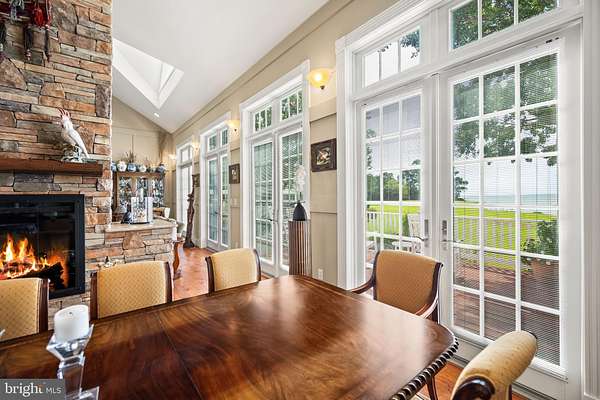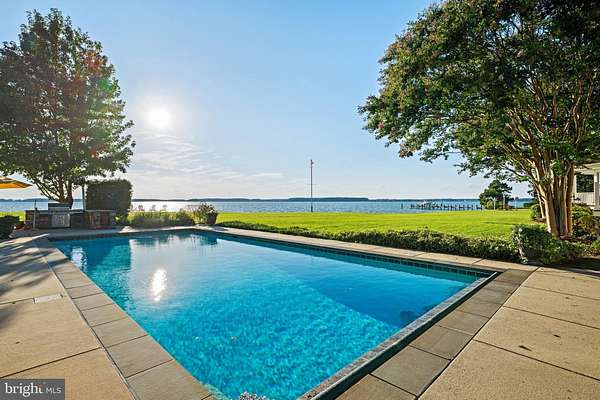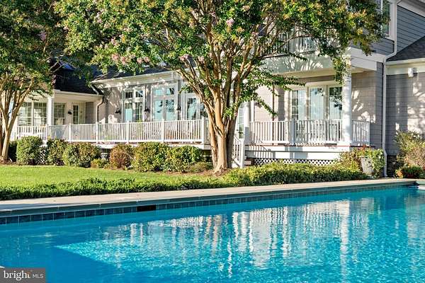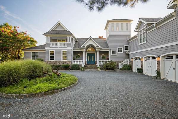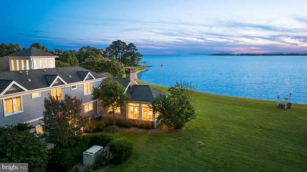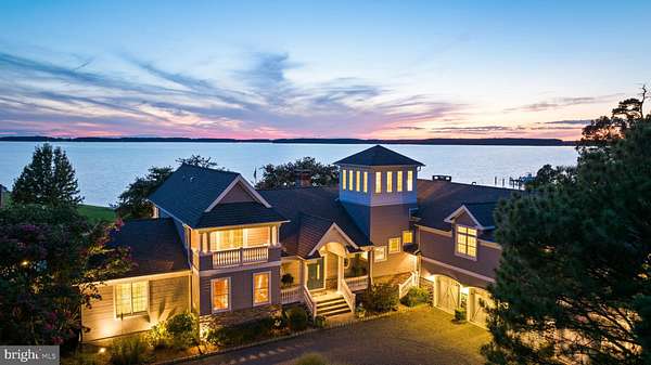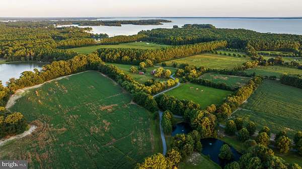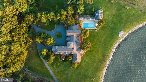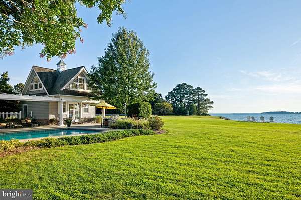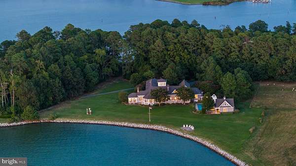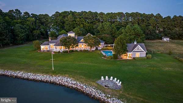 Welcome to Deep Neck Farm Lane, a stately waterfront farm overlooking Broad Creek with sweeping west and southwest views that stretch over the Choptank River to the Western Shore. This extraordinary estate captures dramatic sunsets, summer breezes, and shelter from northern winds, all from an unrivaled vantage point. Built in 2006 by a builder for their family, the 8,500+/- square foot residence provides thoughtful design and enduring craftsmanship. The home was built for hosting and gathering. Seven ensuite bedrooms welcome family and friends, while soaring ceilings, three fireplaces, and a cozy morning room with a wood stove set the tone for gracious living. The turret, perched to catch the last rays of daylight, reminds one that every detail was designed around the water. The accessory structures and outdoor areas for entertaining are well-positioned to capture broad views and an immense water presence. From the waterside deck of the residence to the pool house with bathroom, loft, kitchenette, and outdoor grill, to the riverfront fire pit, the focal point is Broad Creek. The broad water portion of the shoreline is protected with 1,900 feet of stone revetment, and the remaining 2,500 feet of shoreline along Bridge Creek provides a natural setting. The farm has 13 acres under cultivation, with 3.5 acres in pasture. In addition, a 40 x 60 pole barn, featuring a second-floor caretaker apartment, provides ample space for the hobby enthusiast, complete with a workshop and off-season storage.