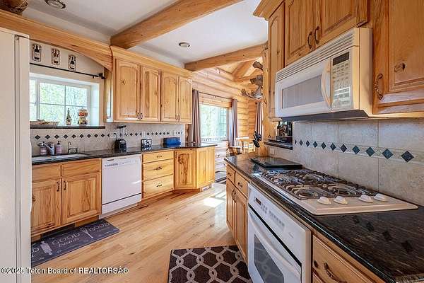 Mountain retreat in Alpine Wy, nestled on 5 acres of pure bliss, this stunning 3-bedroom, 3.5-bathroom log home with 2 distinct living areas in the main house each with kitchens and washer/dryers offers the perfect blend of tranquility and adventure. With sweeping views of the majestic mountains and the serene Palisades Reservoir, you'll be captivated from the moment you arrive. This three-story beauty boasts an open floor plan drenched in natural light, making it a cozy sanctuary for family gatherings and relaxation. The property is a paradise for outdoor enthusiasts, with forest access and nearby Salt River, offering endless opportunities for snowmobiling, fishing, boating, kayaking, and more. Adding to its charm, this property includes a charming 570 sq ft guest house with a loft, full kitchen, washer and dryer, 1 bedroom and 1 full bath, complete with a lap pool, hot tub, and sauna along with another full bathideal for hosting friends or generating rental income. The beautifully landscaped grounds feature a sprinkler system, ensuring lush greenery surrounds you. Located in a highly sought-after area, this home is not just a place to live, but a lifestyle. Don't miss your chance to own a piece of Wyoming paradiseschedule a viewing today and see for yourself why this property is truly one-of-a-kind!