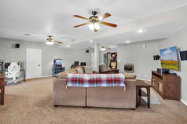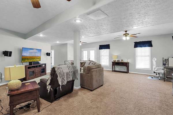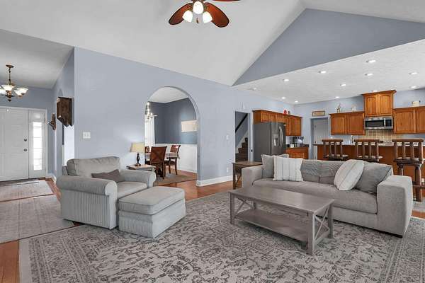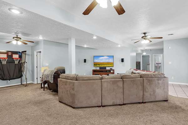 Welcome home to this spacious 5 bedroom, 3 full bath brick beauty situated on 1.69 acres in a fantastic location! Offering over 4,000 square feet of living space, this home provides the perfect blend of comfort, flexibility, and room to grow. The main level features a primary suite and convenient first-floor laundry, along with a large open kitchen designed for gathering and entertaining. You'll love the generous layout, complete with a double pantry area for exceptional storage and organization. Upstairs, a huge loft space offers endless possibilities -- use it as an additional bedroom area, media room, play space, or second living area to fit your lifestyle. The finished lower level expands your options even more with: An additional living space Extra bedroom and full bathroom A wet room A large area perfect for a home gym An additional flex room ideal for a guest bedroom, office, or hobby space Ample storage throughout Step outside and enjoy the wide-open outdoor space with plenty of room for gardening, recreation, or simply enjoying the peaceful setting. At the back of the property, you'll find a sand volleyball court with lighting, making it the perfect spot for hosting unforgettable family gatherings and summer nights with friends. With its beautiful brick exterior, expansive layout, and incredible versatility inside and out, this home truly offers the space and flexibility to meet all your needs -- today and for years to come.