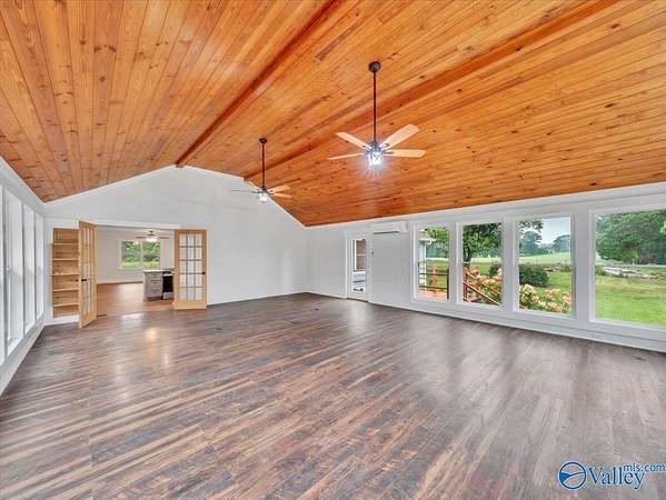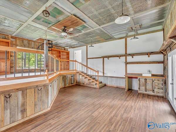 Mini farm located in the DAR school district. Newly renovated 3 bed/2 bath home on 23+/- acres. Step into the large sunroom with beautiful wood floors and soaring vaulted ceiling with a majestic view. The kitchen has been updated with granite countertops and new SS appliances. Brand new electric fireplace surrounded by shiplap makes the main living area so cozy and inviting. Bonus room that has a wet bar. Additional bonus upstairs with a private balcony. New flooring and paint throughout home. Huge garage/workshop has a porch overlooking a bluff view. Partially fenced. Includes cleared land and treed land. Roof Nov 2024 HVAC 2022 Water Heater 2025