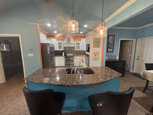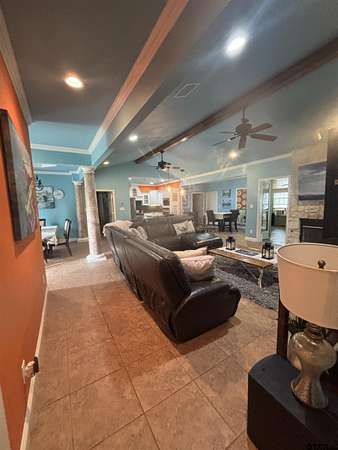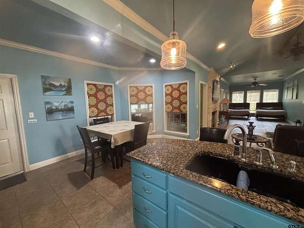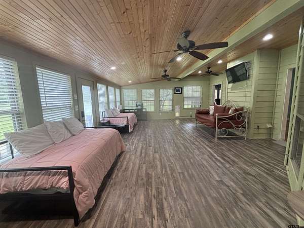 Experience the best of lake living with this beautiful 3-bedroom, 2-bathroom stone and brick home situated on 8.9 scenic acres directly across from the water. Designed for both comfort and functionality, the home features spacious living areas, ceramic tile throughout, and upgraded amenities including a split master suite with double lavatories and a luxurious walk-in bathtub. Two oversized living spaces provide ample room for relaxing or entertaining, making this home perfect for a growing family or weekend retreat. Step outside and take in the natural beauty of the acreage, complete with mature trees and open space ideal for exploring, gardening, or even expansion. The property offers a great setup for outdoor entertaining with plenty of room for gatherings under the stars. Whether you're looking for a peaceful permanent residence, a vacation home, or an income-producing AirBnB opportunity, this lakeside gem delivers it all. Don't miss your chance to enjoy privacy, space, and the serenity of country living just steps from the lake.