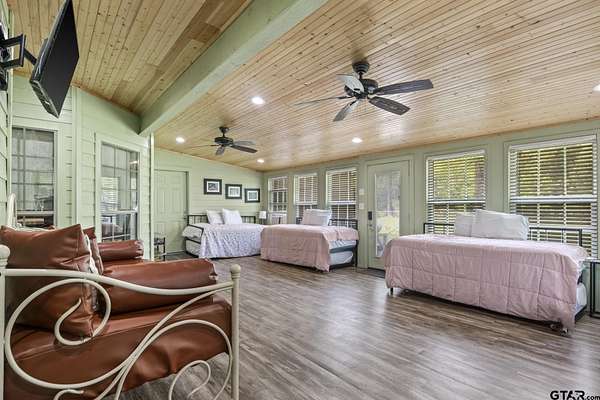 Peace, tranquility and all the amenities Lake Bob Sandlin offers. This beautiful country estate home is situated on 8.9 acres that offer plenty of room for expansion and entertainment. You will enjoy all mother nature has to offer from the views of every window in this sprawling floor plan. Wide doorways and wheelchair accessible. High Ceilings. The primary bedroom suite features a walk-in tub-shower and boast a tremendous sized walk-in closet. The gourmet kitchen opens to a spacious living area from all angles and features a fireplace. The massive sunroom and butler's pantry make this a family home for all occasions. Two deep wells service the home. Oversized 2 car garage is plumbed for an additional bath. Serene view from the bridge overlooking the pond. Walk right out your front door across the street to access the boat ramp. Wrap around fence with private electric gate. This property is located in one of the lakes first original subdivision with a full marina about a mile up the road. Lake Bob Sandlin is approx. 2 hours from the Dallas Fort Worth area.