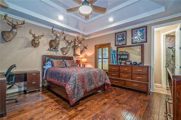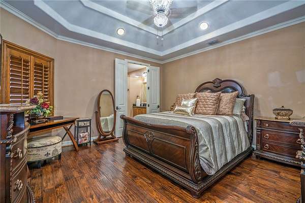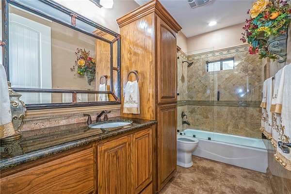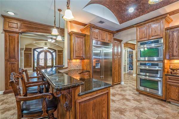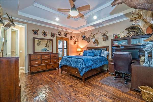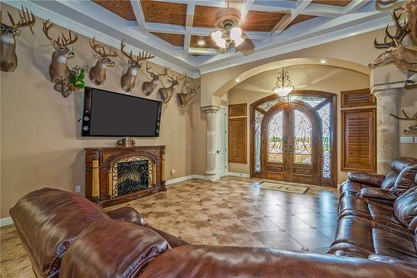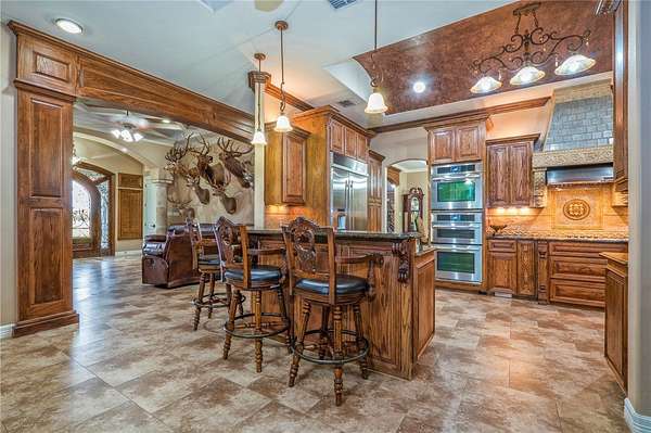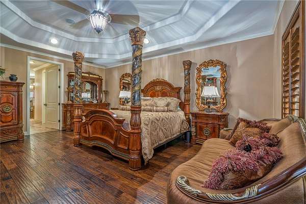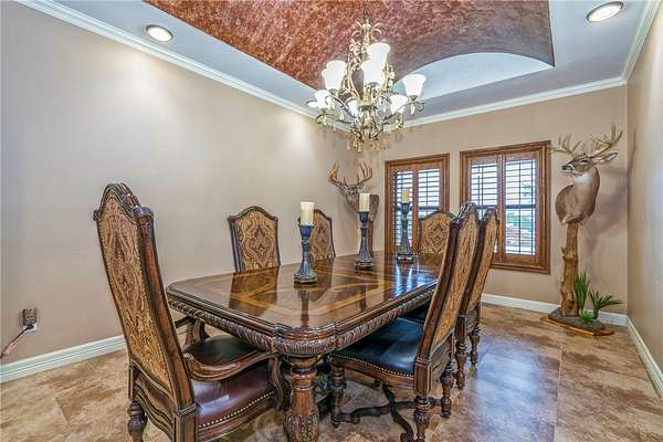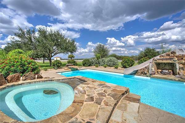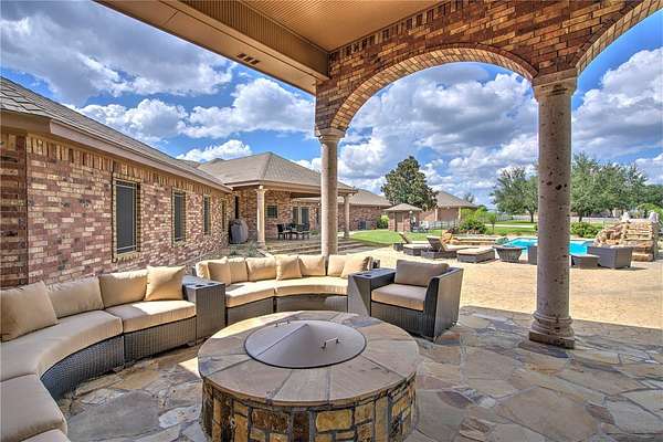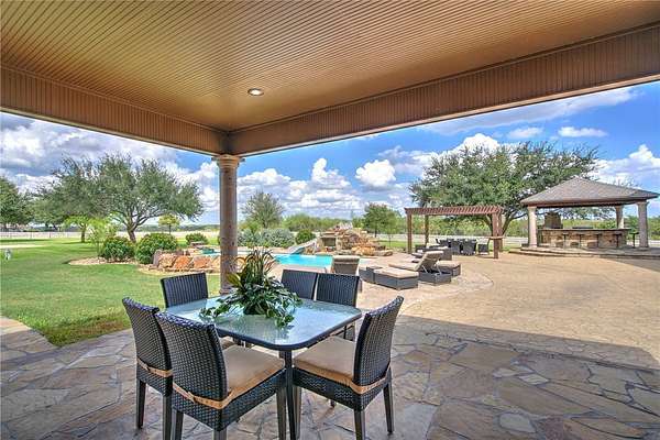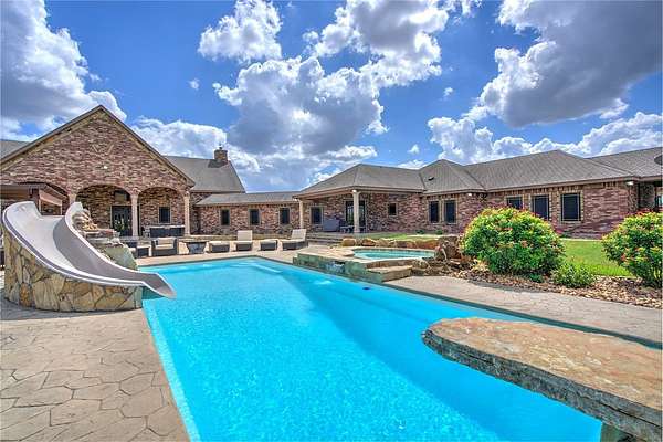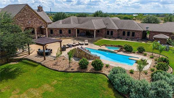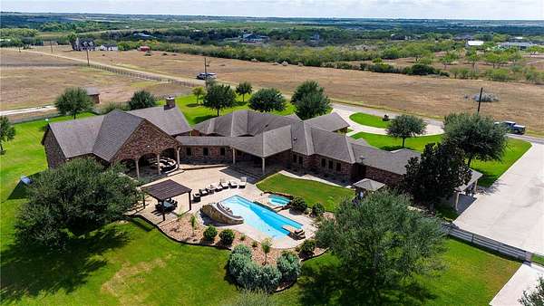 Welcome to a masterpiece of luxury living, where the charm of country elegance meets sophistication. This 6,734 sq ft custom estate redefines opulence. Every detail of this home is designed with the highest standards, from the high-end finishes to the custom craftsmanship throughout. Featuring 5 spacious bedrooms, 5 bathrooms, 3 living areas, and a 5-car garage, this home's centerpiece is a breathtaking 27x67 addition, an architectural wonder that truly leaves you speechless. Whether it's a showcase for grand entertaining or a tranquil retreat, this home captivates with its sheer scale & beauty. Step outside where a massive covered patio overlooks a resort-style swimming pool with an outdoor pavilion kitchen. Every inch of the backyard blends the serenity of the countryside with the indulgence of a five-star resort, resting on 5 acres on this one-of-a-kind estate. With expansive outdoor living spaces and countless interior custom touches, this isn't just a home - it's an experience.