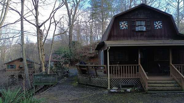 Whittier - Absolutely adorable updated cabin with guest house! Located in the Barkers Creek community, only 13 miles from Harrah's Cherokee Casino. Main house has 3 bedrooms & 2 baths, and the guest house has an additional 1 bedroom & 1 bath. Multiple viewing decks to enjoy the beautiful mountain views. Large storage building and wood shed. Successful rental with most furnishings included in sale. Don't miss this one!