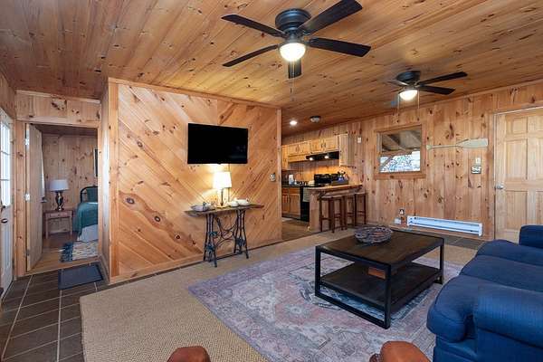 From Dillsboro - Take US 441N/US 74W towards Cherokee. Go 2.7 miles and turn Left on Barkers Creek Rd. Go 1.3 miles and stay Right at the church. Go 1.7 miles to the end and stay Right onto Grindstone Knob Rd. Veer right at gate. Go up hill and take drive to the right, then turn a quick left and right into driveway. Follow pointer signs.