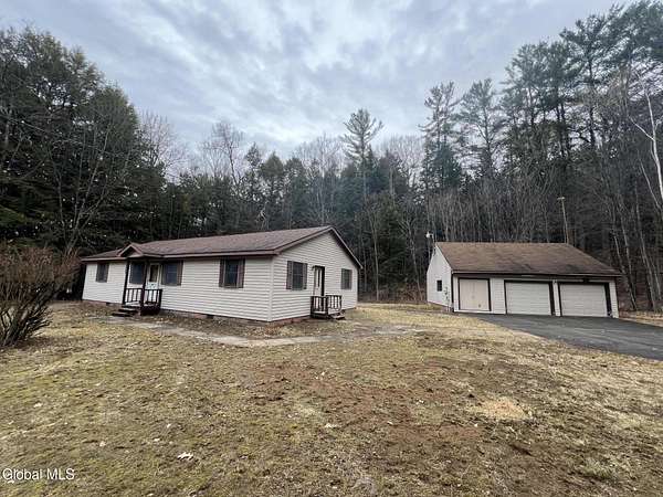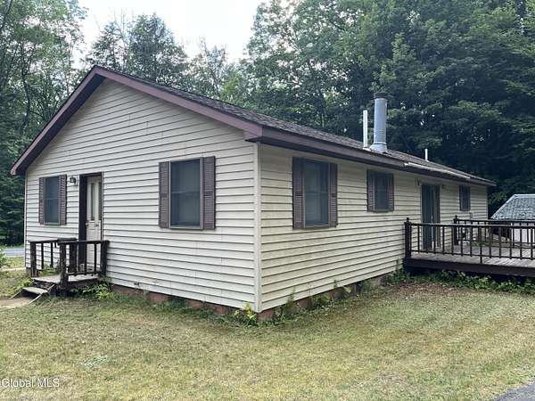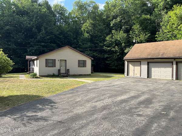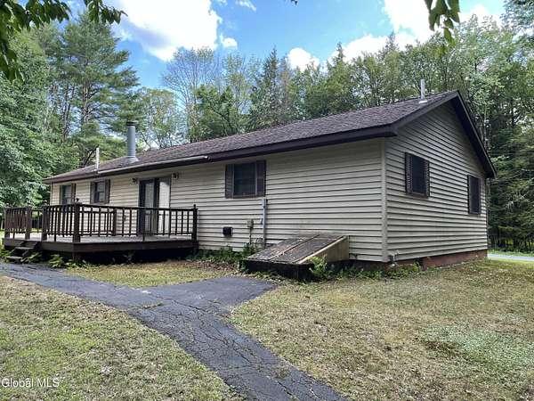 Est $1,700/moWelcome to this peaceful ranch-style home nestled on a quite road less than 2 1/2 miles from the Great Sacandaga Lake. Enjoy a comfortable layout, large living room, back deck and a two car garage with attached workshop (wood stove in workshop) surrounded by nature and privacy. Quite enough to hear the creek babbling across the road. Sold as-is.