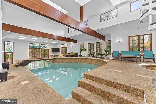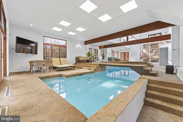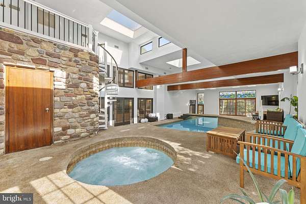 Rare opportunity to lease a fully furnished five-bedroom estate in a desirable suburb of Philadelphia, featuring an indoor pool, covered drive-through entry, and distinctive living spaces. Set on 1.58 private, landscaped acres, this home offers exceptional space, privacy, and a seamless move-in experience. Located in Whitpain Township within the award-winning Wissahickon School District, this beautifully appointed property combines comfort, functionality, and flexibility-ideal for corporate relocation or extended stays. The main living areas include a formal living room, dining room, family room with fireplace, and a dedicated office or study. The well-appointed kitchen supports both everyday living and entertaining. A standout feature of the home is the indoor pool and spa area, enhanced by a striking spiral staircase connecting to the upper-level balcony and primary suite, creating a unique architectural focal point. The private interior balcony overlooks the pool, offering a peaceful and visually connected retreat. Outdoor living is equally inviting, with a gas grill and stone fireplace set within a private, tree-lined backyard, ideal for year-round enjoyment. A circular driveway with covered porte-cochere allows convenient entry into the home without exposure to rain or snow. The property also includes a detached garage and ample additional parking. The spacious primary suite offers a private retreat with a large spa-style bathroom featuring a jacuzzi tub, walk-in shower with dual showerheads, an expansive walk-in closet, and custom built-in wooden bookshelves with a fixed ladder. A private balcony overlooks the indoor pool and spa area. The home includes four additional bedrooms, each with its own private bathroom, including one with a steam shower and others with a combination of shower and tub configurations. One bedroom features a private attic-style loft space. The lower level includes a finished room with access to a full bath and shower area, offering flexible use as a guest room, fitness space, or private retreat, conveniently located adjacent to the indoor pool. Additional distinctive spaces include a sunlit room with oversized window seating overlooking the backyard, as well as flexible lounge or media areas designed for comfort and everyday living. The home is equipped with a whole-house water treatment system and a reverse osmosis (RO) system in the kitchen, providing high-quality water for drinking, cooking, and daily use. Ideally located just minutes from Ambler, Spring House, Blue Bell, Fort Washington, and Horsham, with convenient access to major routes including the Pennsylvania Turnpike and connections to New Jersey, while still within comfortable reach of Center City Philadelphia. Flexible lease terms (6-12+ months considered). Fully furnished (partial furnishing negotiable). Pool maintenance terms to be specified. Available immediately. The property includes a separate unit above the garage with independent utilities, not part of the main residence. The groundskeeper/gardener currently resides in this space.
