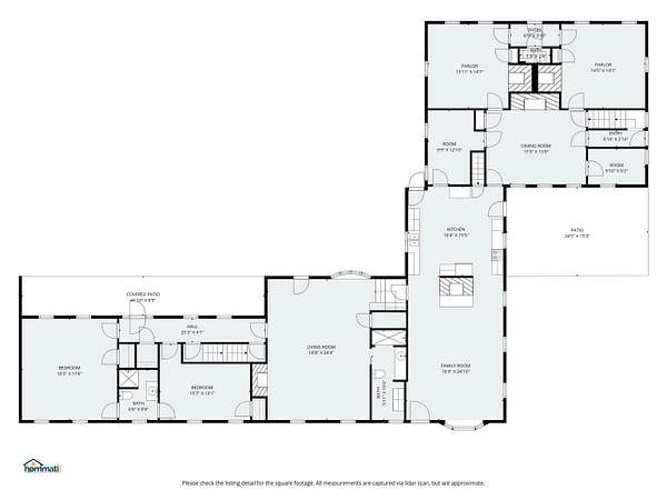 - Basement, Bathroom x 5, Bedroom x 5, Den, Dining Room, Family Room, Kitchen, Living Room, Office
