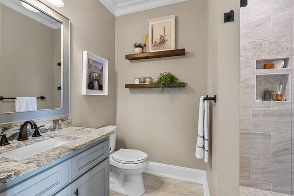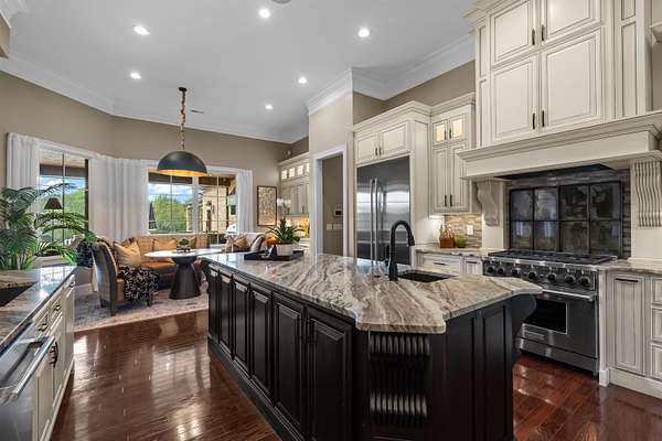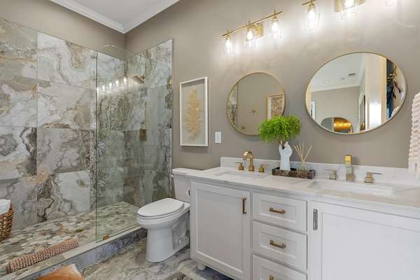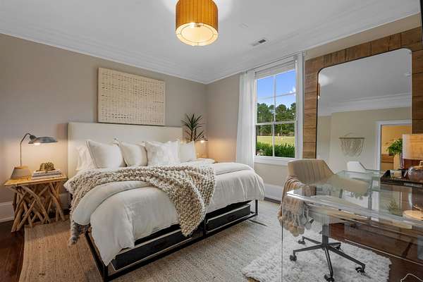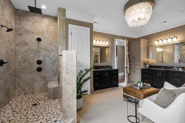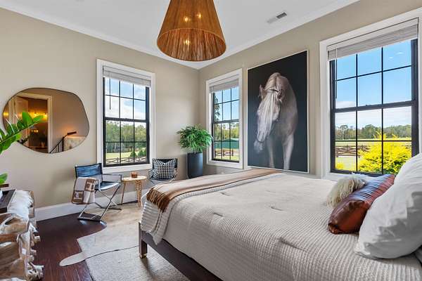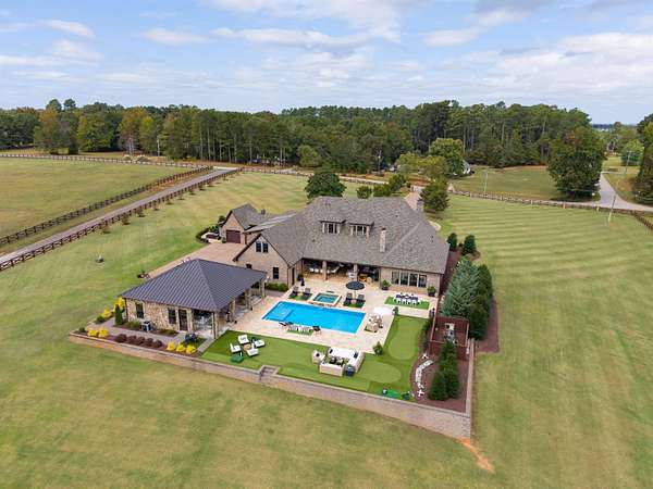 Imagine more than ten acres of pristine, perfectly curated land with an extraordinary home designed for entertaining at every level. Agape Acres Estate is tucked behind private gates, down a tree-lined paver driveway where a graceful fountain welcomes you home. This grand estate feels worlds away from everything, yet remains perfectly positioned close to all modern amenities in Simpsonville, SC. While every corner holds its own charm, the backyard truly steals the show- breathtaking, functional, and unforgettable. A sparkling saltwater pool with a spillover spa glistens beneath the Carolina blue sky, with a nearby putting green ready for friendly poolside competitions. An expansive covered porch spans the width of the home, featuring an outdoor living room, wood-burning fireplace, and full kitchen/grilling area. This space can be fully enclosed and climate-controlled for year-round comfort. Perfect for hosting holiday gatherings that flow effortlessly from indoors to the outdoor fireplace. Enjoy your morning coffee as the mist rises off the pond or unwind fireside beneath the stars. From game days to quiet nights, all the outdoor space has been intentionally designed for every South Carolina season. The pool house feels like a private resort suite, luxurious, stylish, and perfectly situated in the Carolina countryside. Inside, you'll find a hotel-inspired bedroom with ensuite luxury bath overlooking the lush backyard, an additional full guest bath, laundry area, and an attached garage with extensive storage. The poolside kitchen features a large hibachi grill ideal for brunches or alfresco dinners, and like the main porch, this entire area can be fully enclosed, and temperature controlled. These are the spaces where good food and laughter linger long after the plates are cleared. The land itself invites exploration, whether by four-wheeler or alongside a few barnyard friends. Horses or goats would feel right at home here, grazing by the pond stocked with Large Mouth Bass and Bream. The perfect spot for a quiet afternoon of fishing. Roughly four acres are fully fenced, offering a sense of peace, privacy, and panoramic views at every turn. Inside, the same sense of warmth and refinement continues. Rich hardwoods and elegant tile run throughout, with no carpet in sight. The great room, anchored by a grand fireplace and custom built-ins, flows seamlessly into the chef's kitchen, breakfast area, and elegant dining room. The formal dining space feels both sophisticated and inviting, complete with an adjoining bar that turns dinner parties into lasting memories. Imagine hosting the upcoming holidays in this elegant yet comfortable setting. The main-level primary bedroom suite is a serene retreat with a showstopper gas-log fireplace, sitting area, and two custom closets with washer/dryer area. It has the most amazing view of the backyard/pool. Two additional bedrooms with full ensuite baths, an elegant office or sitting room with a gas fireplace, and a home theater room with a wet bar/kitchenette for movie nights are all located on the main level. You'll also find two conveniently placed powder rooms and a spacious walk-in laundry room on this floor. Head to the second level to find two additional ensuite bedrooms, each with beautifully custom-tiled baths, along with an extra office, and a spacious recreation/living area featuring a well-appointed kitchenette. This home is ideal for multi-generational living or hosting long-term guests. With over ten acres of land, there's enough room to add future home sites or additional amenities. Every detail of this grand estate has been carefully curated, from the custom ceiling designs and designer lighting, to the fully finished, epoxy-coated five-car garages. Every closet custom, and every space designed to showcase exceptional craftsmanship. This is a home that seamlessly blends indoor and outdoor living spaces together. You will certainly have a hard time choosing your favorite spot.