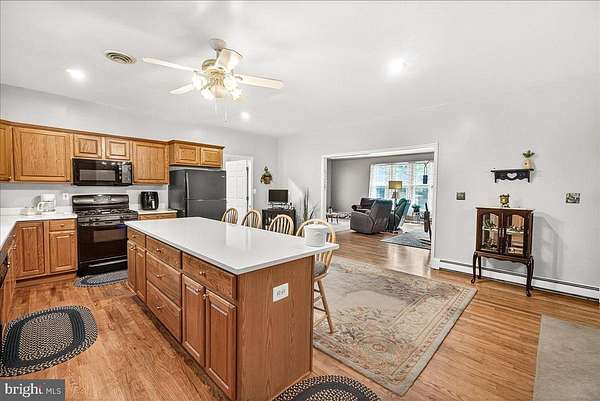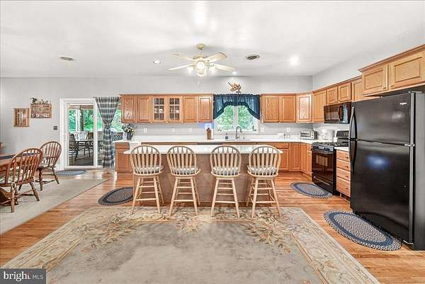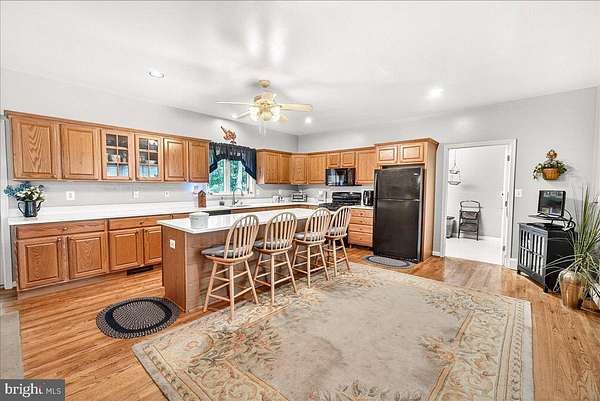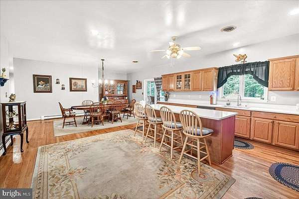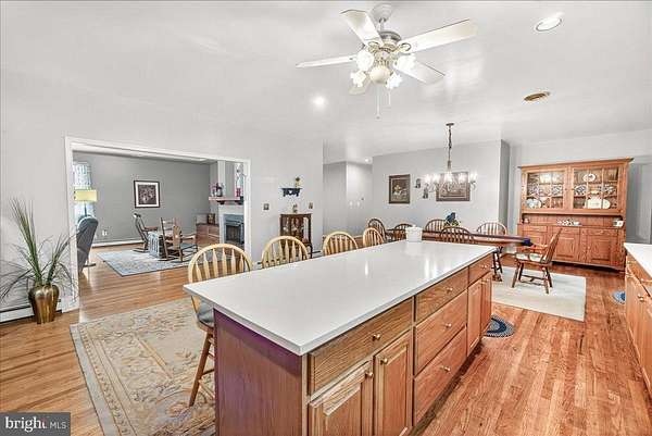 - Ceiling Fan(s), Country Kitchen, Dining Area, Family Room Off Kitchen, Island Kitchen, Open Floor Plan, Pantry, Wood Floors