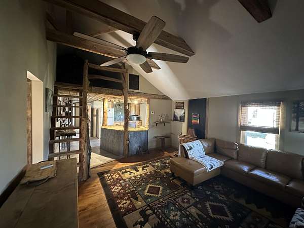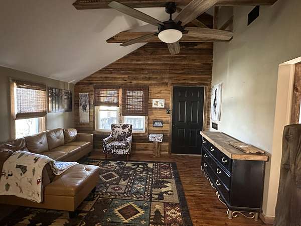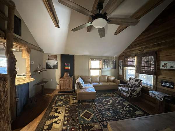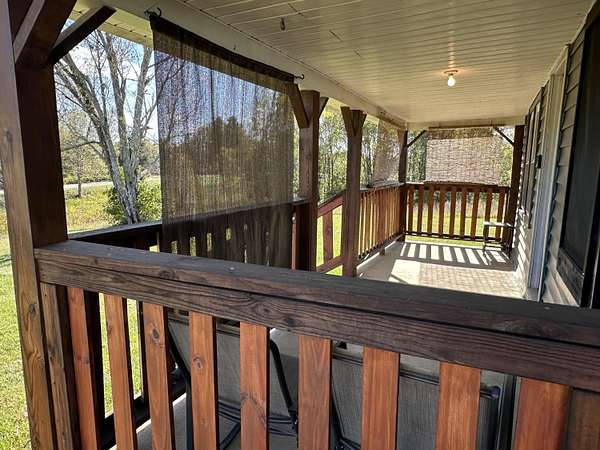 Are you looking for a cozy home with unrestricted land! This unique bungalow/cabin style home might be exactly what you're looking for. With mostly cleared land of approximately 3.95 +/- ac for your mini farm with trees surrounding most of it and an underground dog fence installed around most of the cleared area to let your furry friends roam around, you will love the setting and the big deck out back to enjoy your coffee and grilling or the front porch to sit and take in the view when it's raining will be hard to beat! You will also enjoy how the home sits back off the road for privacy! lots of potential with this one and plenty of room to build on or build your dream home while having a place to live until its completed and then have a great guest home for your friends and family! All furnishing to remain with the home except for the wall art. Home also has a nice size loft area great for storage!