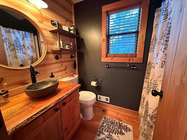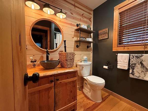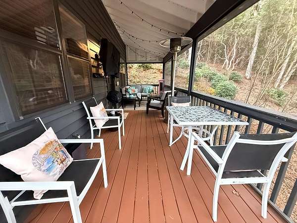 This Stunning Cabin is privately tucked away in the trees with a Seasonal Mountain View. The sounds of the rushing creek across the way is so tranquil and relaxing. This fully furnished 2 bedroom 3 bathroom cabin offers the following. A gravel parking area with space for large vehicles. A welcoming wide entry staircase and a wrap around porch. The kitchen is beautifully thought out from the countertops to the beautiful cabinetry. A spacious living room draws you right inside with the stunning rock fireplace, offering gas logs for the cool mountain days. The screened in porch is perfect for entertaining and enjoying the cool mountain breezes. The spacious out building is situated for ease of storing your items or toys. Paved road access just minutes from downtown Hiawassee, Lake Chatuge, dining, shopping and golf courses. Make this mountain cabin yours!