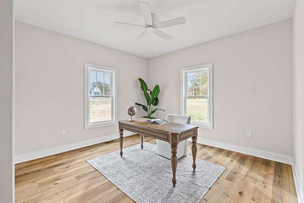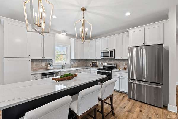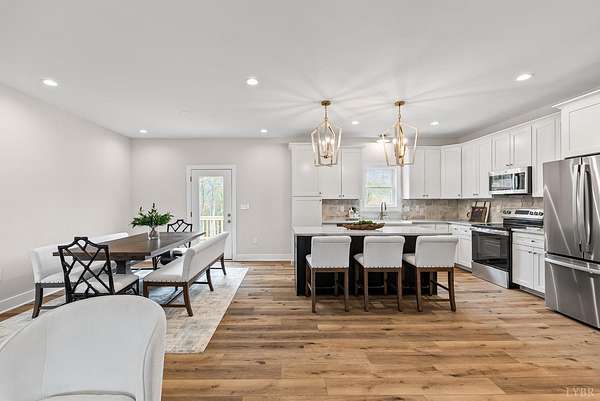 $10K in closing cost incentive!!! Stunning New Construction Home on almost 1.50 Acres tucked away in the Elon Forest community and just minutes to the James River. This showstopper is a 3-Bedroom, 2-Bath home featuring an exquisite 27X8 rocking chair front porch with composite deck detailed A frame, neutral colored board and batten vinyl, beautiful columns that will warmly welcome you and your guest's home. Notable features include energy efficient HVAC, luxury vinyl plank floors, upgraded quartz, upgraded soft close cabinetry, stone fireplace, all stainless-steel appliances including refrigerator, tiled primary bath, upgraded lighting, oversized laundry room with plenty of storage and room for a future drop zone, and other carefully crafted details. The unfinished basement is plumbed for a future bathroom and has lots of potential to grow! Enjoy the spacious back deck for gatherings while you look out over your large level backyard. This one is a hit so don't miss i