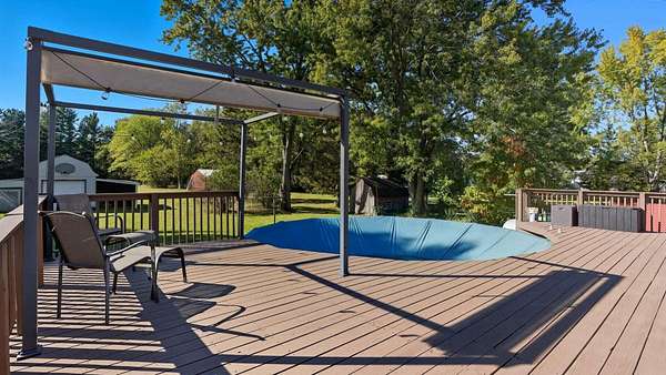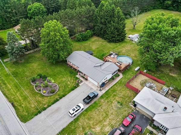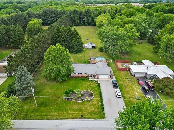 Looking for space to breathe, room to play, or a peaceful place to downsize without giving up comfort? This beautifully updated 4-bedroom, 1.5-bath ranch on 2 acres of tree-lined land offers the perfect blend of charm, convenience, and country living. Step inside to a bright, open-concept layout designed for easy living. The cozy living room flows into a modern, fully renovated kitchen--perfect for family dinners or entertaining friends. A handy laundry/utility room opens to the freshly stained back deck, creating seamless indoor-outdoor living. This home has been thoughtfully updated from top to bottom, including new kitchen cabinets, appliances, flooring, bathroom vanities, and mechanical systems. The maintenance-free aluminum roof offers long-lasting durability and peace of mind for years to come. Outside, you'll find endless possibilities--whether it's raising livestock, keeping chickens or goats, gardening, or tackling projects in the pole barn. Enjoy summer afternoons in the above-ground pool with a new liner and drain, relax in the 3-seasons porch, or host BBQs on the wrap-around deck while taking in the quiet country views. With a 2-car attached garage, plenty of storage, and move-in-ready condition, this property is the perfect place to enjoy the freedom of country life. Priced to sell--schedule your private showing today and make it yours!