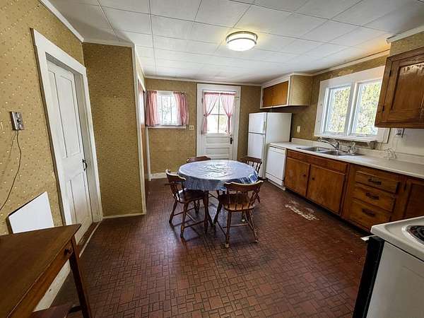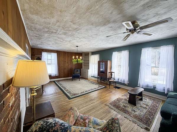 Stunning Hunger Mountain views out your kitchen window and from the 2nd floor primary bedroom, this circa 1850 cape is a romanitic dream. Attached small barn and former single bay garage to restore or use as a wonderful work shop. Above the flood plain yet close to the Mad River across 100B and just north of Moretown Village with over two and a half acres, a great location it is. Dramatic ledge outcroppings hidden in the upper woods could be a killer place to build a cabin or accessory dwelling. Fertile gardening soil and a 10 x 10 or so windowed shed for the hobby farmer. Jumbo laundry/mudroom, attractive 2015 Vermont green standing seam metal roof, 2022 furnace+water heater, 2024 sump pump and, get this, a brand new 3BR $31k in ground septic system in 2025. Yes! The heavy lifting done, just the fun stuff for your design; take this old Vermont farmhouse to the next level with your special sauce. Exterior scraped and largely primed before winter dropped. Surrounded on three sides by 125+ acres. Hop, skip and a jump to Sugarbush, Stowe, Montpelier and well under 50 minutes to the Queen City. Moretown, one of the Mad River Valley's best kept secrets can be yours. More is right... Please note the tax map northern boundary should be farther north of the driveway.