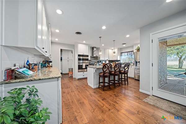 Welcome to your own little slice of paradise! This meticulously well maintained brick home is situated on 4.55 acres. Over the years, the home has been thoughtfully updated to enhance both style and functionality; updates include hardwood floors, granite countertops in the kitchen, a new composition roof in 2024, inside and out AC units in July of 2022, as well as a whole home water softener system. The kitchen showcases a gas cooktop, built-in double ovens with microwave capability, and ample cabinetry for all your storage needs- a dream come true for the home chefs! In the spacious primary bedroom, you'll find his-and-hers walk-in closets, French doors leading to the back patio, and a huge bathroom complete with an oversized walk-in shower and a custom antique heirloom vanity with dual-sink quartz countertops. Designed for year-round enjoyment, the home features a cozy wood-burning fireplace for cooler days as well as a back patio ideal for relaxing and enjoying the unobstructed view. Outside you will also find an outbuilding along with an insulated storage shed with two roll up doors and a window unit making it perfect for whatever fits your lifestyle. Come see for yourself how every detail comes together to make this a home that truly has it all!