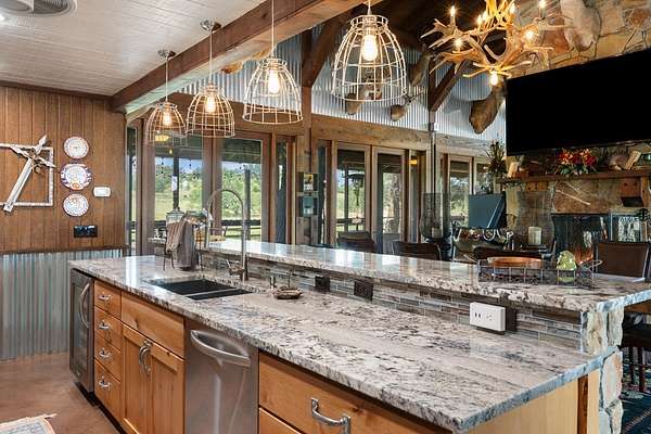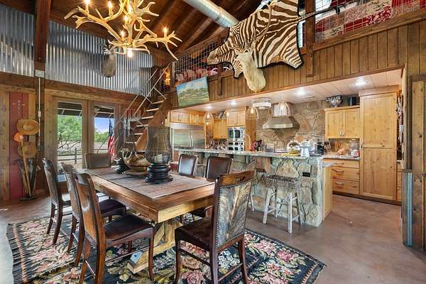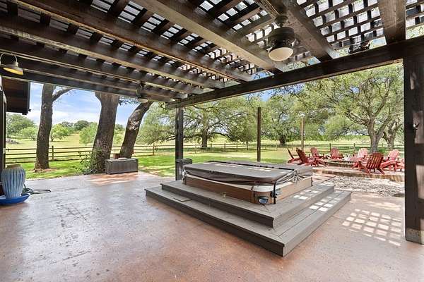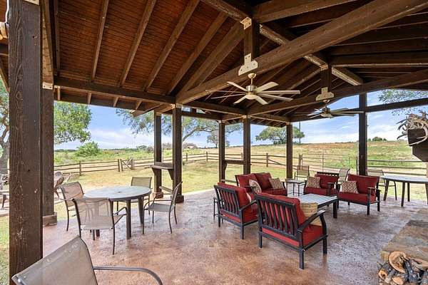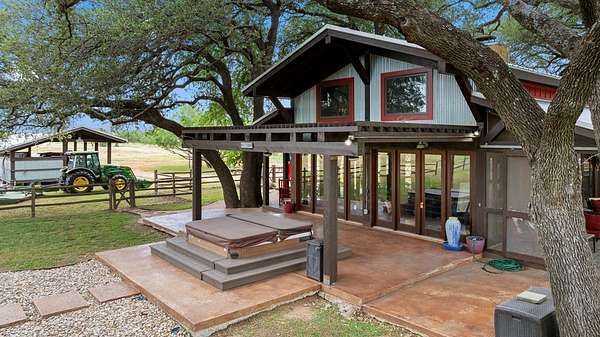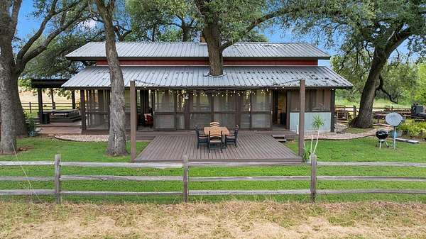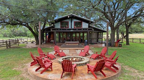 Est $237,251/moPrime Ranch location, approximately 400 +/- acres on Hwy 71, right off 2147. Multiple properties on the ranch. Unique main property with 25-foot vaulted ceilings with wraparound porches surrounded by French doors opening to hill country views. Gourmet kitchen with stainless steel appliances, dining area, loft bedroom area, several seating areas, a Party hot tub, enormous fire pit, and a three-car carport. The entire property is fenced, with several small lakes, a hunting pavilion with a half bath, electrical, and storage. Two service properties and one caretaker's home. Plus barn & greenhouse.