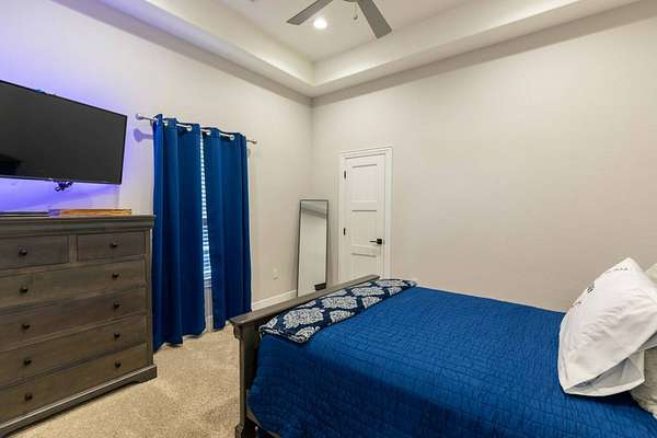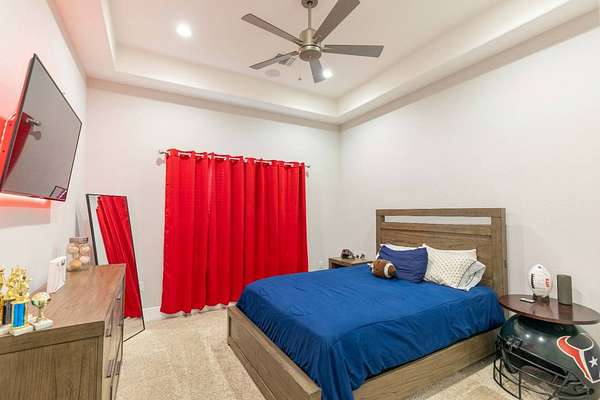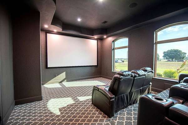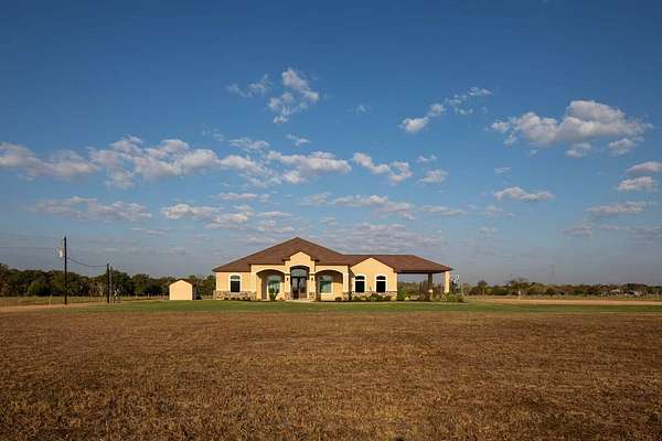 PRICED REDUCED!! Welcome to this stunning 5 bedroom, 3.5 bath home located on 5 acres in the quaint town of Hempstead, Texas. Built in 2018, this spacious 4,936 square-foot, Smart Home, residence combines modern convenience with country charm, offering a perfect blend of style and functionality. With an open concept design, this home is ideal for both family living and entertaining guests. Upon entering, you'll be greeted by soaring 16' ceilings in the expansive living room, creating an inviting atmosphere filled with natural light. The large patios and windows throughout the home allow for a seamless connection between indoor and outdoor living spaces. The living room flows effortlessly into the gourmet kitchen and dining areas, making it easy to host gatherings or enjoy quiet meals with family. The well-appointed kitchen is a chef's dream, featuring high-end appliances, ample cabinetry, and a spacious island that serves as the perfect hub for meal prep and casual conversations. Adjacent to the kitchen, the formal dining room provides an elegant space for special occasions and intimate dinners. For those who enjoy media and entertainment, the dedicated media room offers a fantastic space to relax and unwind. The home also includes a private office off the foyer, perfect for remote work or study, ensuring a quiet retreat for productivity. The home's open concept and smart design make it a joy to live in and move through. Each of the five spacious bedrooms offers comfort and privacy, with ample closet space and large windows to let in the natural light. The primary suite is a true retreat, with an expansive layout and an en-suite bath that features a soaking tub, walk-thru shower, double vanity, and a large walk-in closet. The additional bedrooms are generously sized and well-suited for family and guests. Practicality meets luxury with two mud rooms, offering convenient spaces to store coats, boots, and outdoor gear as you come and go and the home is equipped with a state-of-the-art water filtration system. Strategically located, with an easy commute to Houston, this home truly offers the best of both worlds-space, luxury, and proximity to city life. Don't miss your opportunity to own this beautiful property in Hempstead, Texas. Property is currently under an ag exemption.