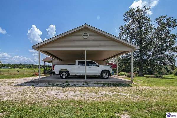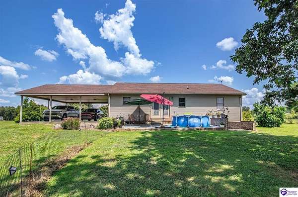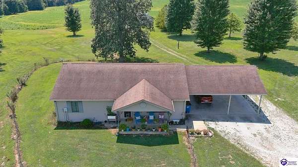 Charming 1 owner Ranch home on 32 Acres with Outbuildings and Open Layout! Welcome to this beautiful ranch-style home situated on 32 picturesque acres--approximately 16 of which are currently in crop production, offering a blend of privacy and practicality. This property is ideal for those seeking peaceful country living with modern convenience and space for hobbies, farming, or expansion. Enjoy relaxing on the covered front porch or entertaining on the rear patio. A spacious attached 2-car carport and a 2-bay metal shed (approx. 14x60) provide ample room for vehicles, equipment, and storage. Inside, the home features an open-concept kitchen and dining area with hardwood and laminate flooring. The kitchen is equipped with a center island and adjoins a convenient laundry room with utility sink. The cozy living room offers a gas fireplace, perfect for cool evenings. The home includes two main-level bedrooms with laminate flooring. Primary bedroom also has a walk-in closet. 2nd bedroom also has a walk in closet. Hall and master baths each feature a vinyl tub/shower combo The partially finished basement offers great potential, already including a partially finished 3rd bedroom and a 3rd full bathroom with shower. Home is also wired for a generator. Plenty of land for recreational use, animals, gardening, or continued crop income. Don't miss your opportunity to own a property that combines comfortable living with valuable acreage and outbuildings!