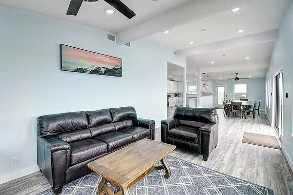 This newly expanded, remodeled and tastefully furnished coastal living 4bdr 4.5 bath home with a wraparound porch overlooking Intracoastal waterway is a must see! Entrance privacy fence for security. Bring your small boat practically to your back door or you can just fish from your backyard! Absolutely one of a kind dwelling in incomparable waterfront location with all amenities. There is none other like this! Every bedroom features its own full bath and porch access. Enjoy easy water access where you can fish all day. Home features a spacious kitchen, dining, and living room plus a home theater for the perfect entertaining space. Spacious storage below residence with over one acre for other outdoor storage.
