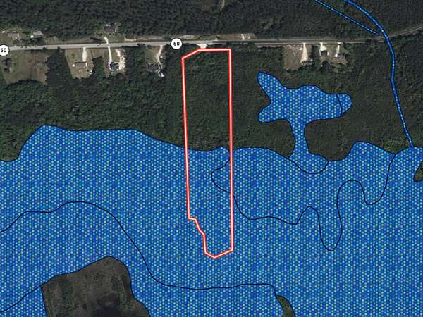 With about 230 feet of road frontage, access is easy and convenient. County water is available at the road, and a fire hydrant at the front of the property provides peace of mind and enhanced protection for any future home. Nearly the entire tract lies within the FEMA 100-year flood plain, so any residence will require construction above the base flood elevation--an important consideration for those planning a new build. No perk test has been performed; however, the on-site Stallings Loamy Fine Sand soils are permeable and percolate well, indicating they are likely suitable for a septic system (this can be confirmed by a perk test).