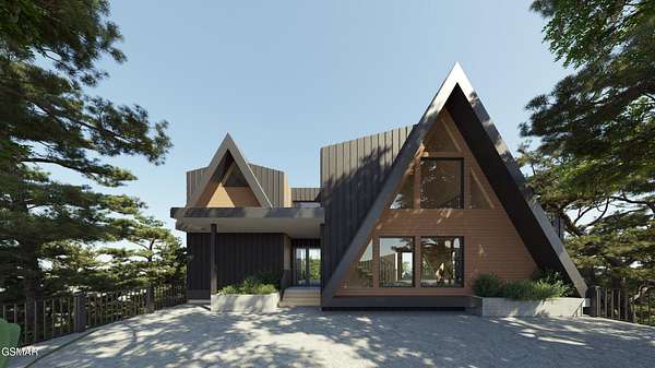 Discover your future mountain retreat in this stunning modern A-frame pool chalet, a perfect blend of sleek modern design and Smoky Mountain charm. This pre-construction gem boasts 4 spacious bedrooms and 6 luxurious full baths, offering ample space for families and guests alike (will sleep 12 comfortably). The open-concept layout features soaring ceilings, expansive windows, and high-end finishes that flood the home with natural light and breathtaking views of the surrounding nature. On the main level you'll be greeted by a state-of-the-art kitchen and inviting living room with soaring 16ft tall ceilings, a dedicated dining room, a massive deck space for outdoor dining (32x12), and a main level full bedroom with it's own walk out doors to the expansive deck. On the top level, you have a game room with ample space for a pool table and arcade games, as well as a queen over queen built in bunk bed for the kiddos! This level also features a dedicated bedroom + full bathroom, with it's own private walk out deck. On the lower level you walk into the dedicated theatre seats, with enough space for 12 seats and a build in riser for the back row. This level also features a common area full bath, along with the final 2 bedrooms each with their own private en-suite baths, and sliding doors out the pool deck. The pool deck incorporates an outdoor/covered gunnite 30'x8' salt water pool, and a dedicated nook just for the hot tub. This property checks all the boxes for the highest performing properties in the Smokies with the amenities, sleeping capacity, and sheer modern mountain style and design (and obviously, the pool!). Rental projections ranging between $145k-$170k! Please note: As a pre-construction project, buyers will need to secure their own financing to initiate the build, with an anticipated completion timeline of 10-12 months after financing closes.