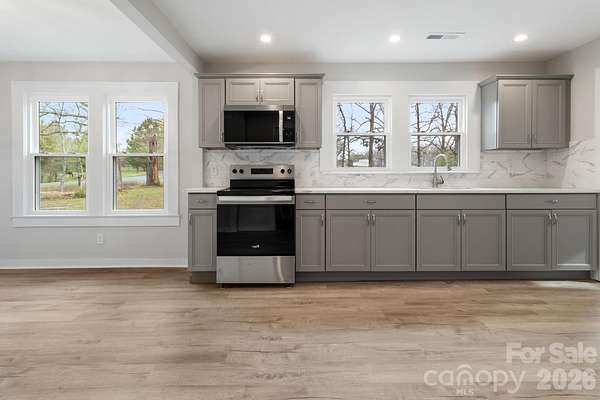 This is it! A 3 bedroom 2 bath completely renovated brick house in the county with new architectural roof, new replacement windows, new heat pump w/central air, new kitchen cabinets w/marble counter tops, new range refrigerator and microwave, new vinyl plank flooring, new ceiling fans and light fixtures, new paint throughout, new deck, lots of shade trees and no HOA or city tax. Located in the geographic center of the county convenient to schools and businesses in the country!