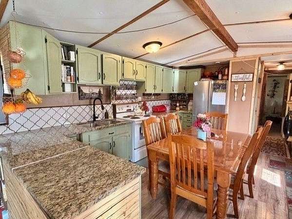 LIL HOMESTEAD IN PLEASANT VALLEY - This charming 2-bedroom, 1-bath MH home sits on 2.5 serene acres, where the soothing sounds of year-round Quillisascut Creek provide a peaceful backdrop. The inviting interior features a cozy country kitchen with granite countertops, a pantry, and a wood stove that radiates warmth throughout. Recent upgrades include a durable new metal roof (2025) and solar panels to offset energy costs. Outdoor enthusiasts and gardeners will fall in love with the 50'x100' deer-fenced garden, fully equipped with drip irrigation and an incredible variety of perennial crops-from crisp apples and peaches to a massive selection of berries and asparagus. The property is a homesteader's dream, featuring a 20'x40' shop with a mezzanine, a large chicken coop, a small greenhouse, and multiple dedicated outbuildings. With an RV hookup and a private drive off paved Pleasant Valley Road, this property perfectly balances secluded country living with easy accessibility!