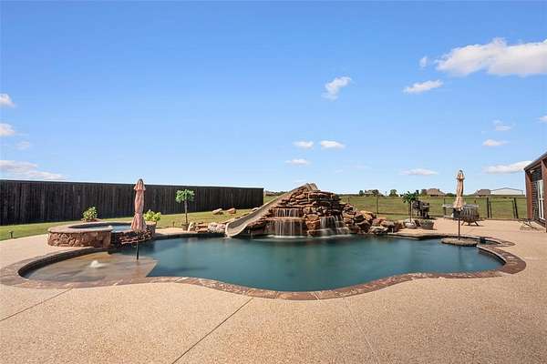 1.58 ACS. 2447 CR 2710 -LOTS TO OFFER UNIQUE FEATURES & MANY AMENITIES!! - 2 HOMES, A SEPARATE VERSATILE GUESTHOUSE OR FOR YOUR MOTHER-IN-LAW. A BUILDING WITH WORKSHOP WITH UPPER LEVEL FOR STORAGE. RV HOOKUPS. HEATED IN-GROUND SWIMMING POOL, SPA, WATERFALL, SLIDE & OUTDOOR SHOWER. LARGE DRIVEWAY WITH PLENTY OF PARKING SPACES. MAIN HOME IS 2,340 SQ. FT. 4 BEDROOM, 2 BATHS, STUDY, WOOD BURNING FIREPLACE, OPEN FLOOR PLAN, WITH BEAUTIFUL VIEW OF THE POOL FROM LIVING AREA AND DINING AREA. KNOTTY ALDER KITCHEN CABINETS, GRANITE CTR TOPS, HAND SCRAPED HARDWOOD FLOORS, CERAMIC, CARPET, WIDE CROWN MOLDING, AND COVERED PATIO. GUESTHOUSE IS 1,460 SQ. FT. LARGE OPEN FLOOR PLAN , WITH 1 BEDROOM & 2 QUEEN MURPHY BEDS, LARGE BATH DBL VANITIES, LARGE SHOWER, FULL KITCHEN WITH LARGE BAR. 5 DAIKON EUROPEAN AC-HEATERS, ONE SIDE OF GUESTHOUSE IS ALL GLASS TO ENJOY VIEW OF THE POOL AT NIGHT TIME WITH THE LIT UP WATER FOUNTAIN. OVERSIZED COVERED AREA FOR POOLSIDE ENTERTAINMENT. GUESTHOUSE HANDY FOR POOL. 8 FT CEDAR WOOD FENCE FOR ADDED PRIVACY. RAINBIRD 14 ZONE SPRINKLER SYSTEM. LOCATED IN EXEMPLARY CADDO MILLS ISD. DON'T WAIT COME LOOK !!!