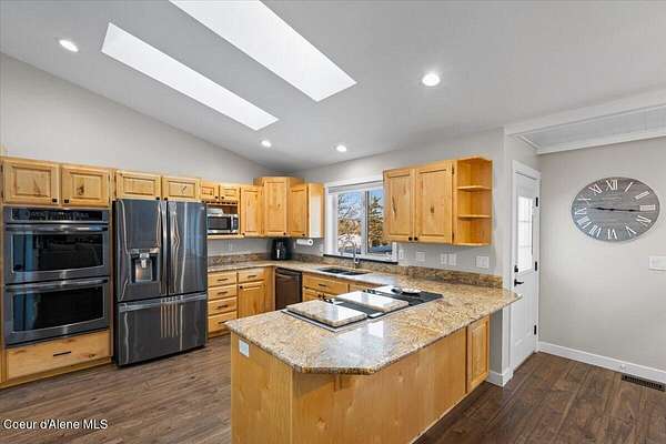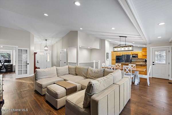 Enjoy the perfect blend of privacy & convenience with this spacious 4-bed, 3-bath home on 4.88 acres in desirable Hayden. Offering 3,485 square feet of comfortable living space, the home features vaulted ceilings, an open & light-filled layout, & large windows that capture beautiful territorial views. The kitchen is designed for both everyday living & entertaining with granite countertops, stainless steel appliances, a breakfast bar, and walk-in pantry flowing seamlessly into the main living areas. The main floor primary suite offers comfort & privacy, while the finished walkout basement adds flexible space. Generously sized bedrooms & multiple living spaces provide flexibility for family, guests, or home office needs. Outside, the nearly 5 acre property offers 36x24 barn, 12x24 outbuilding, chicken coop, covered carport, fenced pasture, room to roam, garden, or enjoy the peaceful North Idaho setting just minutes from Hayden Lake, Coeur d'Alene, Silverwood, and Farragut State Park.