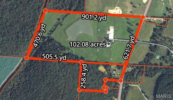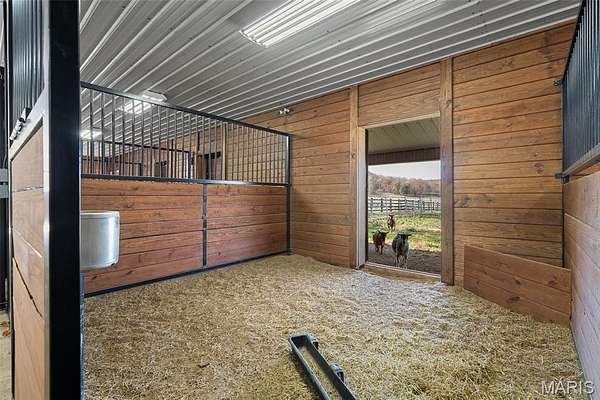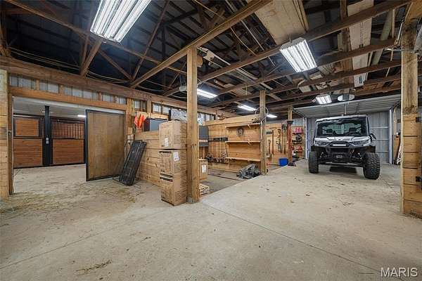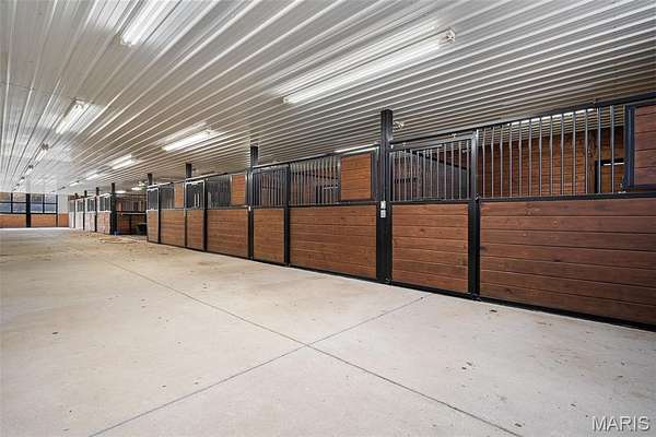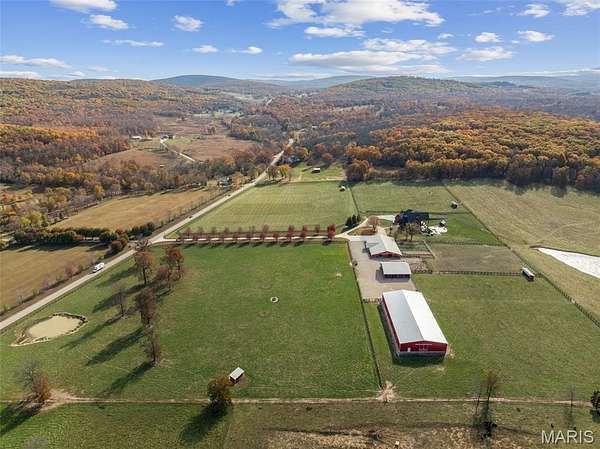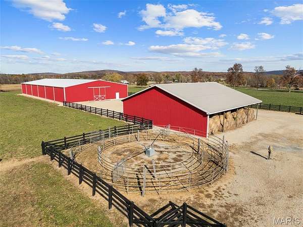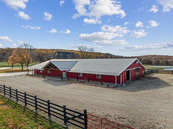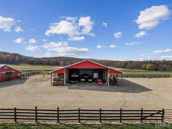 A 102-acre, picturesque estate set at the foothills of the St. Francois mountains, this property is in a category of its own. The St. Francis River runs through the back acreage alongside a diversely stocked pond. State of the art equestrian facilities boast 8+ stables with water lines, rolling and flat pastures, a riding ring, and a luxurious indoor riding arena. An additional pole barn sits between the stables and riding arena. The recently added 25-acres on the southeast side of the property features beautiful hills and wildlife in the wooded areas.