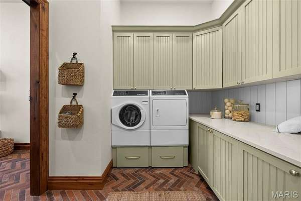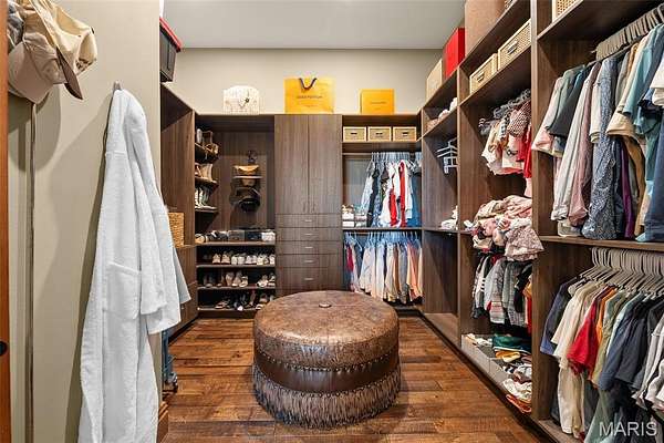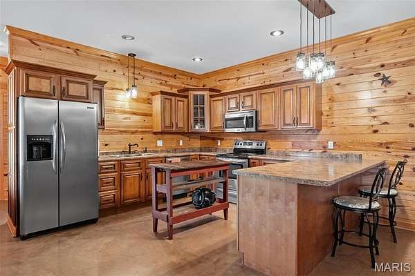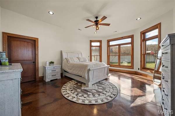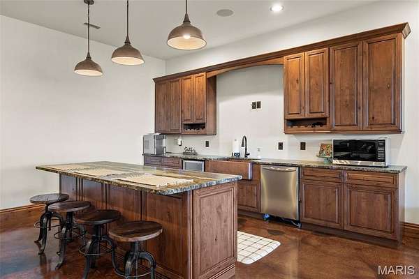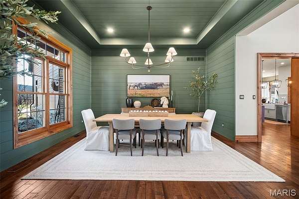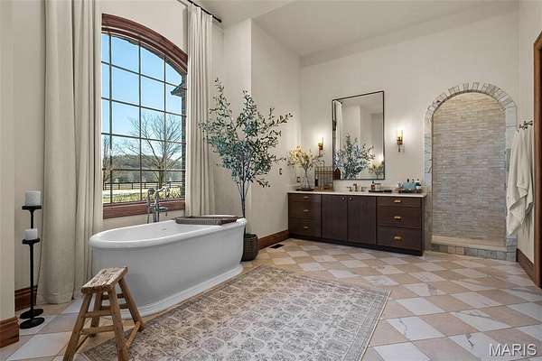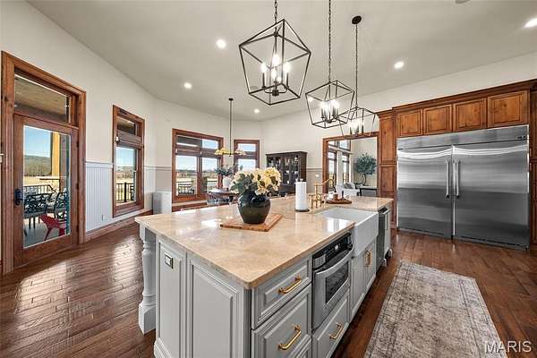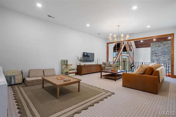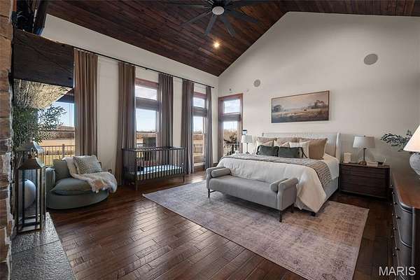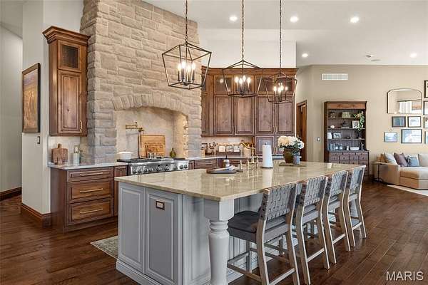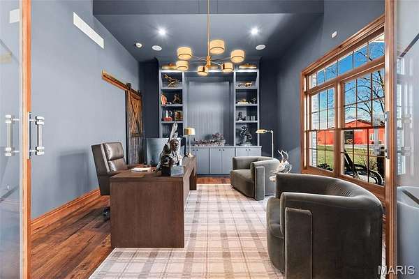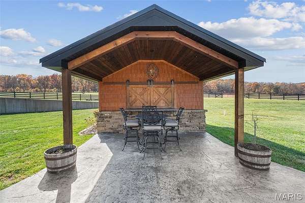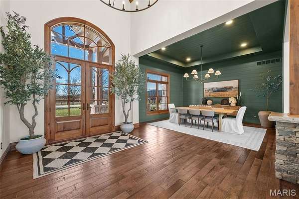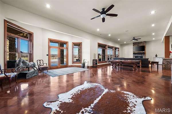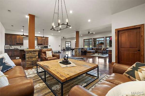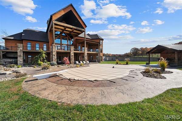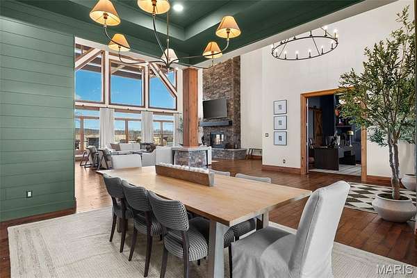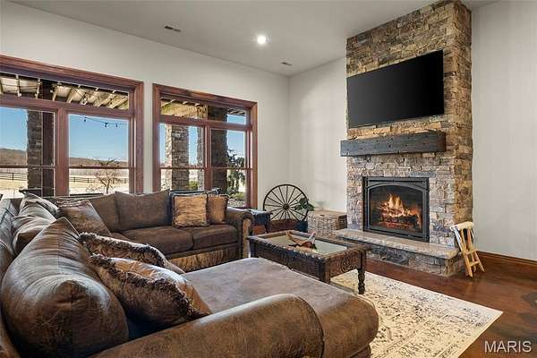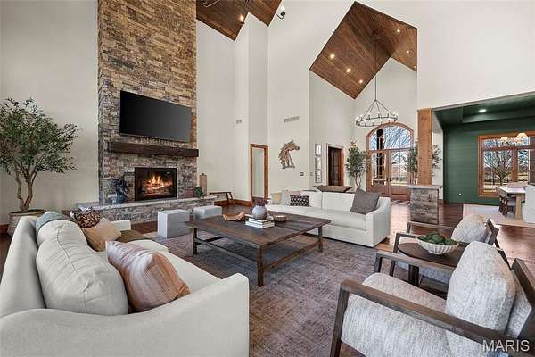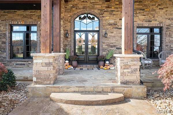 The home solidifies itself as one of the most well-planned estates in the entirety of Missouri. A breathtaking 5-bed, 7-bath with over 10,000 SF of livable space on property steals the show. Upon entry is your stately office and comforting dining room on either side. With 40-foot cathedral ceilings, the great room showcases a stunning stone hearth and fireplace. Of course, you won't miss the floor to ceiling windows overlooking the ridges of the St. Francois’. The gourmet chef’s kitchen with Taj Mahal quartzite counters grab your attention. It features commercial-grade appliances, an extensive butler’s pantry, coffee bar, stone hood, breakfast nook, and plentiful custom cabinetry. Rounding out the main floor is a cozy bay-windowed family room, half bath, chevron brick floor mud room and laundry room, and the spa-like primary suite with fireplace, vaulted ceilings, oversized individual vanities, soaking tub, walk-in closet, and a shower with its own zip code.