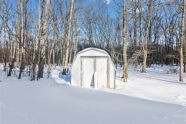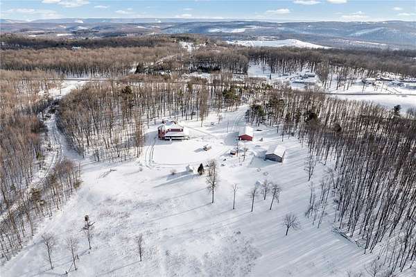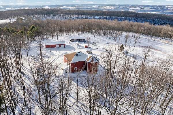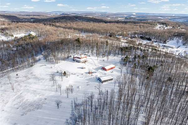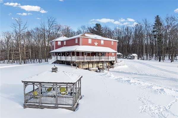 Set privately in the heart of 35 wooded acres, this extraordinary custom estate was masterfully built to the owner's exacting standards, offering over 4,100 square feet of impeccably finished living space plus 2,200 square feet of additional lower-level potential. A sweeping wrap-around porch welcomes you into a residence defined by craftsmanship and structural integrity. Constructed with continuous 10" poured concrete walls, reinforced steel beam supports, 2x6 framing, blown-in insulation, and hard-coat plaster over blue board, this home was designed for longevity as much as luxury.