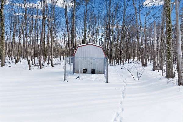 - 30' x 60' detached four-car garage with three automatic doors, attic access, 110/220 electric (welder and compressor ready), running water, and code-compliant lighting o 30' x 50' barn with electric, adjustable stalls (1-5), tack room, running water, and fenced pasture o 12' x 12' church-style glass greenhouse o 12' x 16' fenced dog pen