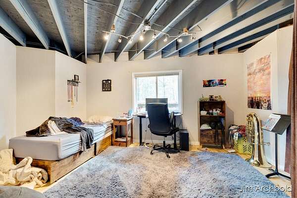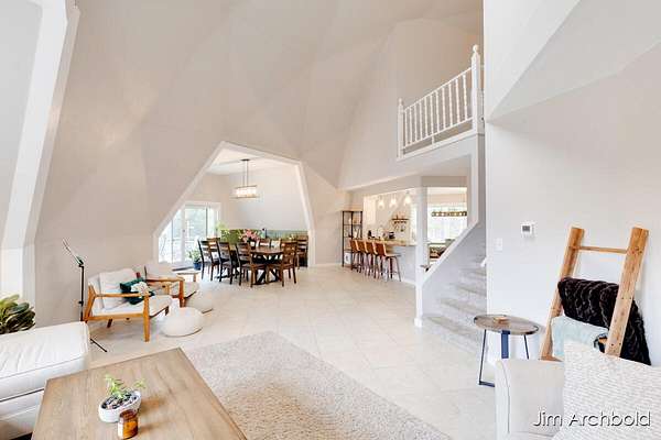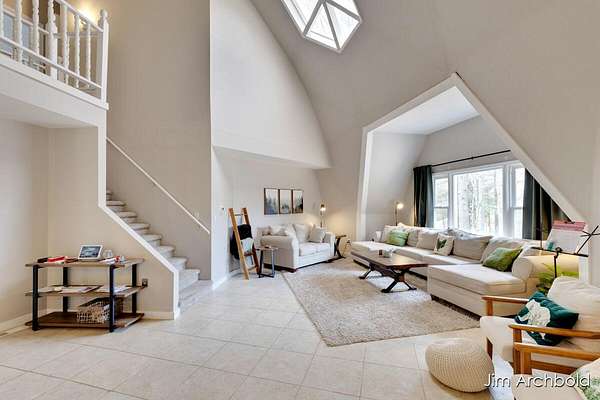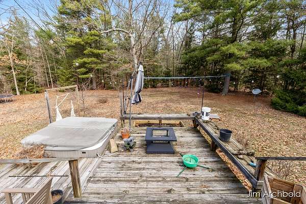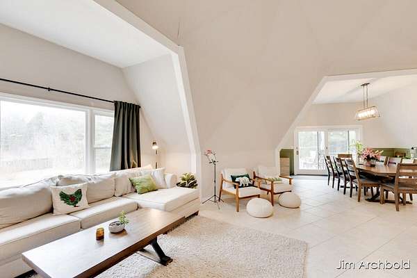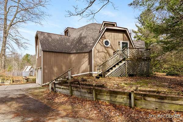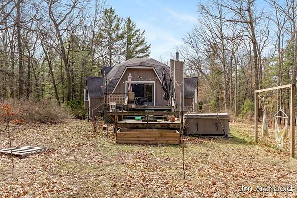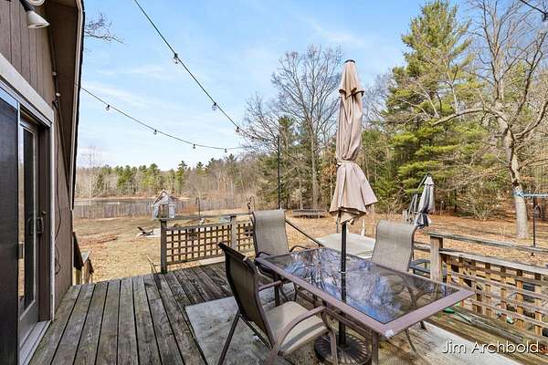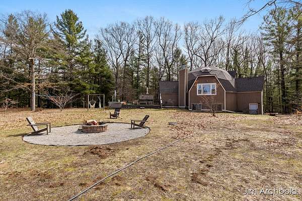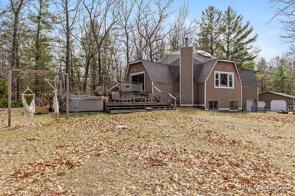 One of a kind home set on nearly 4 private acres in the Reeths Puffer School District. This spacious 5 bedroom, 3 1/2 bath retreat offers over 2,700 sq ft designed for comfort and entertaining. The expansive open living and dining areas flow effortlessly to a large deck overlooking peaceful, wildlife filled surroundings. The primary suite features a relaxing tub, while the finished rec room complete with a fireplace connects directly to the heated garage for year round enjoyment. A detached pole barn adds incredible versatility for hobbies, storage, or toys. With abundant natural views, unique architecture, and space to breathe, this is a rare opportunity to own something truly special.