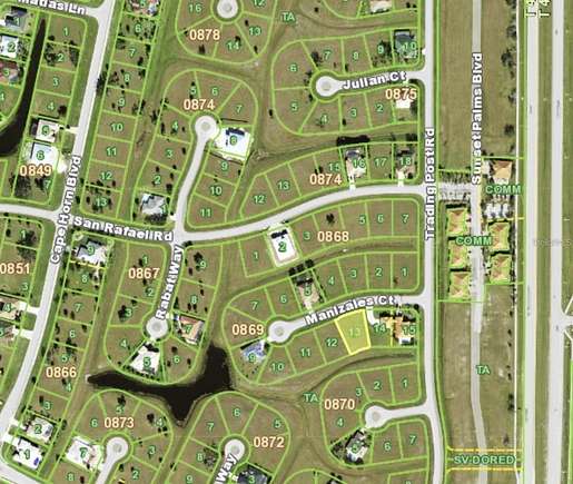 Drive south from Burnt Store RD, turn right to Trading Post RD, turn right Manlzanes Ct. The lot is on the left side.