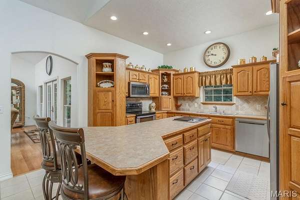 WELCOME to PARADISE nestled in the woods in a PARKLIKE SETTING only 2 MILES FROM TOWN and I-44! Making it an EASY COMMUTE TO FT. WOOD OR SPRINGFIELD. This CUSTOM BUILT, ONE OWNER 4900 SF ML HOME on 3 acres PLUS a LARGE, HEATED 24X36 SHOP with ATTACHED 9X24 TRACTOR SHED! This beautiful home has a VERY OPEN MAIN LEVEL WITH 2 MASTER SUITES (OR 1 MASTER/1GUEST) each with walk-in showers, large closets, and one has a JACUZZI TUB! The Great Room has a MASSIVE CATHEDRAL CEILING and AWESOME STONE SEE-THROUGH PROPANE FIREPLACE! The DINING ROOM/HEARTH ROOM shows the other side of the fireplace and opens up into the LARGE KITCHEN WITH BEAUTIFUL CUSTOM CABINETS with WHIRLPOOL STAINLESS STEEL APPLIANCES including DOUBLE OVEN AND JENN AIR GRILL! Also a HOME OFFICE, LAUNDRY ROOM, PANTRY, SPARE BATH, AND GREAT OPEN VIEWS! Upstairs there's a LARGE BONUS ROOM that could be an extra bedroom, family room, or office! The OPEN STAIRCASE LEADS DOWNSTAIRS TO THE LARGE SPORTS ROOM WHERE THE POOL TABLE and air hockey table are located! Also a separate MEDIA ROOM FOR THE BIG SCREEN TV AND SURROUND SOUND and a room for your exercise equipment! Down the hall you will find 4 LARGE BEDROOMS WITH WALK IN CLOSETS THAT HAVE QUEEN BEDS and one has A KING BED! Also 1 FULL BATH, 1 HALF BATH, HVAC ROOM, AND TORNADO SAFE ROOM! This is a WALKOUT BASEMENT and ALL BEDROOMS HAVE WINDOWS! The LANDSCAPING IS BEAUTIFUL! GREAT LOCATION NEAR THE HOSPITAL AND SCHOOLS! 6 ADDITIONAL ACRES AVAILABLE for added price! DON'T MISS YOUR CHANCE TO OWN THIS ONE OF A KIND PIECE OF TRANQUILITY!