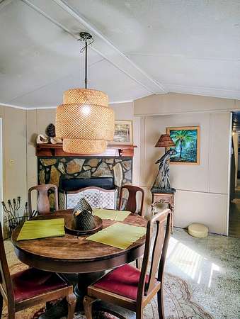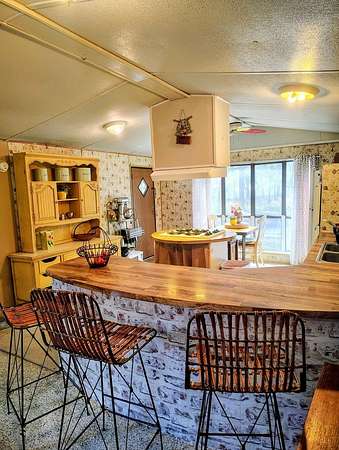 This charming 4-bedroom, 2-bath mobile home presents a fantastic opportunity for those wishing to personalize their living space. It is situated on a lovely 5.03-acre lot near the serene Waters Lake. While the property is not directly on the waterfront, it is just a short distance from a convenient access gate that leads to the inviting shores of the lake, surrounded by a park-like feel. A long, private driveway welcomes you to this peaceful retreat, offering a sense of seclusion. Inside, you'll discover a spacious living room filled with natural light, perfect for gatherings and relaxation. The open eat-in kitchen features an island that enhances functionality while framing beautiful views of the lake, making mealtimes an enjoyable experience. To complete this enchanting home, a cozy fireplace adds warmth and ambiance, inviting you to unwind after a long day. With a little TLC, this property truly blends the beauty of nature with the comforts of home.