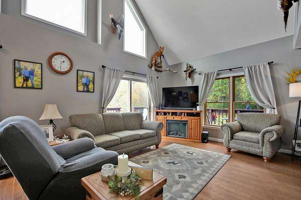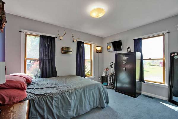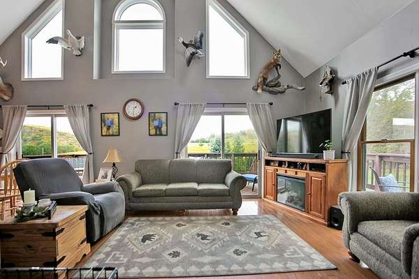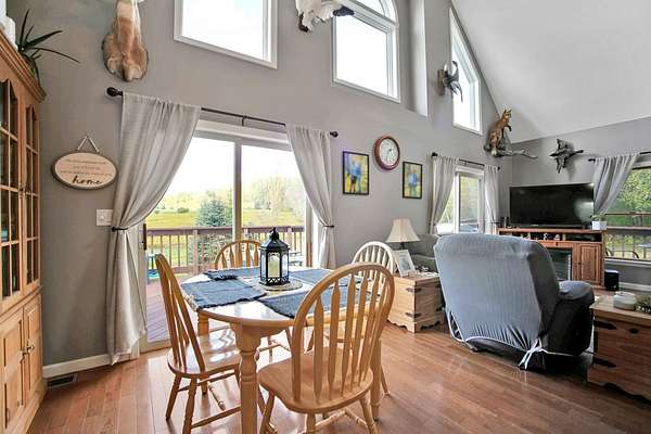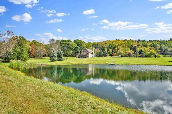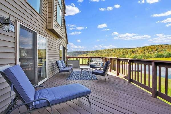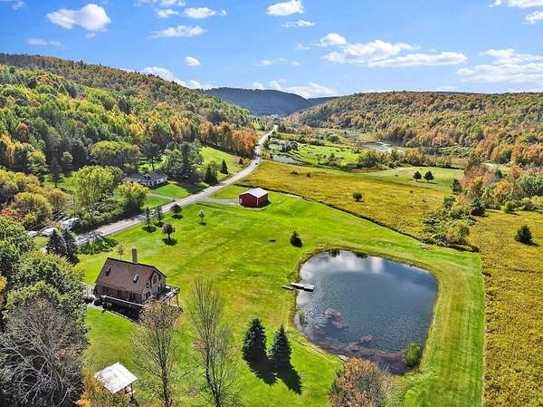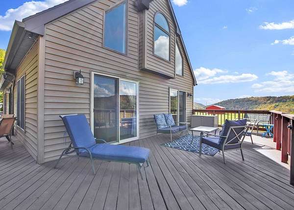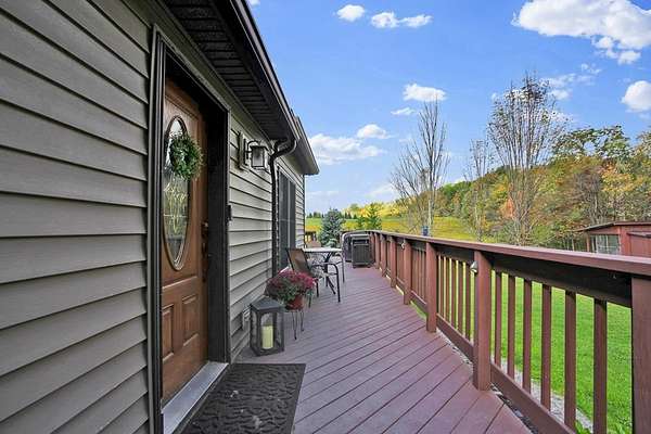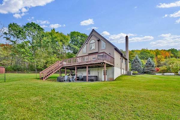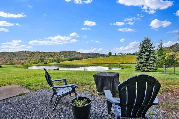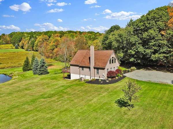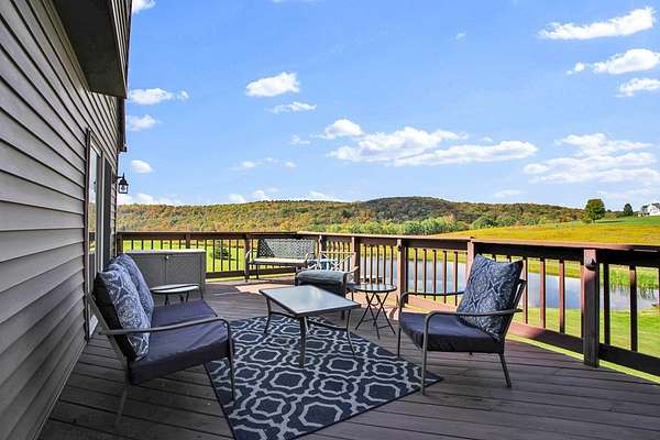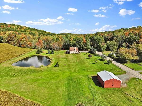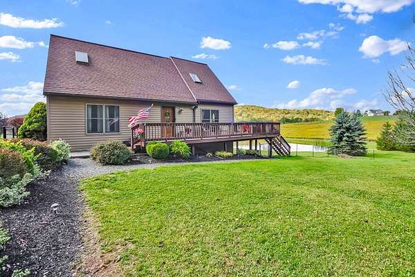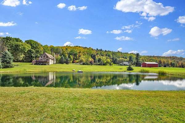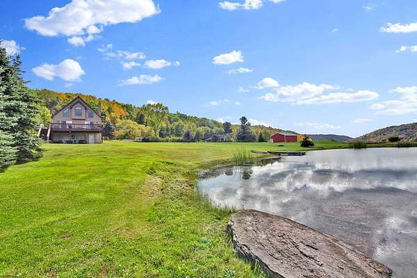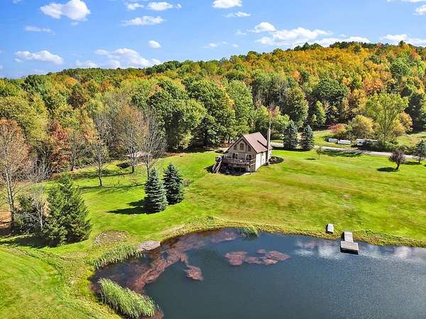 MOTIVATED SELLER, Enjoy the peaceful lifestyle you've been looking for with this charming 4-bedroom, 1.5-bath home overlooking a gorgeous private pond. A large deck offers the perfect spot to relax and take in the mountain scenery. Inside, the spacious main level features a country kitchen with dining area, a large living room, two bedrooms, and a full bath. Upstairs, you'll find a private master suite with a half bath. The walk-out basement includes an additional bedroom and laundry area. Comfort is assured with three heating sources and central air conditioning, all in excellent condition. The home is also wired for a hot tub, with a private area ready for installation. Outdoors, the pond is a recreational dream perfect for fishing, swimming, and year-round enjoyment. To top it off, the property includes a huge pole barn 3-vehicle garage with ample space for equipment, storage, and all your toys. This is truly a property that blends comfort, recreation, and stunning natural beauty.