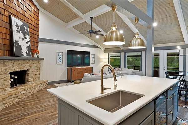 - Built-In Features, Decorative Lighting, Eat-In Kitchen, Kitchen Island, Open Floorplan, Vaulted Ceiling(s), Walk-In Closet(s)