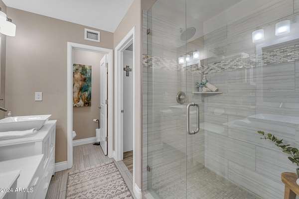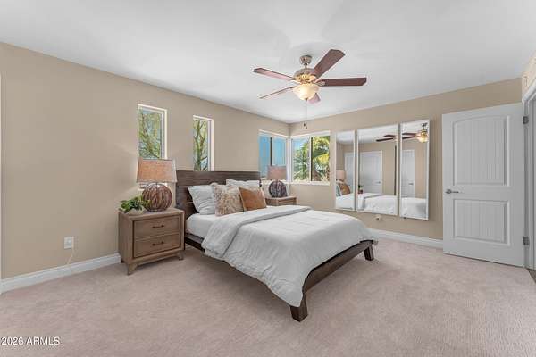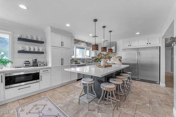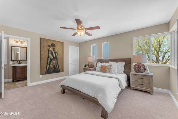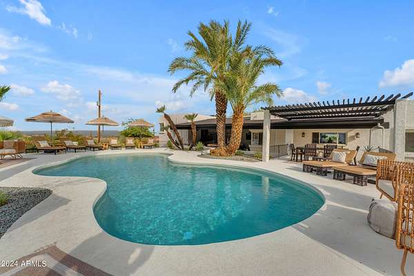 Escape the hustle and bustle of the city just minutes from the heart of it all! Nestled on over 3+ acres this 5-bed, 5 bath estate backs up to the Phoenix Preserve, with direct access to South Mountain's hiking trails from your backyard. Panoramic 360-degree mountain views, enjoy peace and tranquility as you gaze out over the city in this serene desert retreat. This home is an entertainer's dream, w/ sparkling diving pool, built-in BBQ, and an expansive backyard designed for hosting family and friends. Step inside to find a beautifully updated interior with a chef's dream of a kitchen. Adding to its appeal, the property has a separate 1-bed, 1-bath suite with its own kitchen, living room, and views. Experience resort-style living & close to everything Phoenix has to offer! $300K+ upgrades This exceptional estate spans two separate parcels totaling 137,004 sq ft (3.14 acres), providing ample space for outdoor activities and privacy. With individual parcel sizes of 81,108 sq ft, 55,896 sq ft, there's plenty of room for your imagination. The guest attached guest suite is 622.5 sq ft of the total 4,034 sq ft. There are 1,261 sq ft of outdoor covered living area. The expansive lot allows for parking toys, housing horses, or creating customized landscaping. The interior boasts newer flooring and fresh paint throughout, enhancing the home's appeal. This property truly offers a unique combination of tranquility and convenience, all while being just minutes from the vibrant offerings of Phoenix!