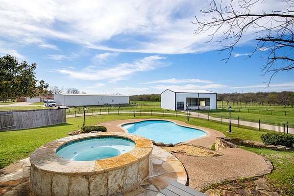 Escape to your own private sanctuary without ever leaving home. Nestled behind a private gate on approximately 6 sprawling acres in Sunnyvale, this stunning estate offers the rare luxury of wide-open space and complete tranquility. The home itself underwent a meticulous 2021-2022 transformation, reimagined into a modern farmhouse masterpiece. Step inside to find a seamless, well-appointed open-concept layout where the kitchen flows effortlessly into the expansive living and dining areas. High-end finishes abound, from the durable wood-textured tile and designer fixtures to the brand-new balcony and deck overlooking your vast 6-acre domain. Spend your afternoons cooling off in the sparkling pool or melt your stress away in the hot tub. Beyond the main house, the lifestyle opportunities are endless. A true outdoor enthusiast’s dream, featuring two winding creeks for fishing and ample space for ATV adventures. Bring your horses and livestock to enjoy the secure, fenced grazing areas and massive 2,400 sq. ft. barn already in place. Enjoy the cozy outdoor fireplace for peaceful evenings under the stars. With no HOA to limit your vision, this isn't just a home; it's the retreat you’ve been waiting for. Don’t pass up this rare opportunity!