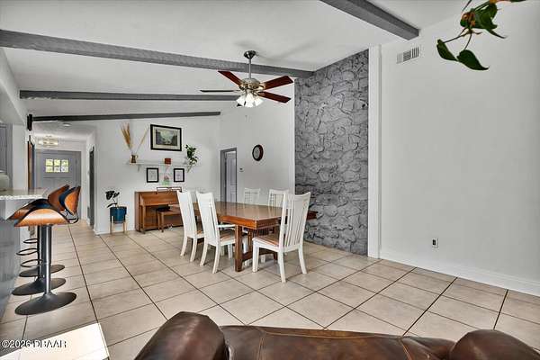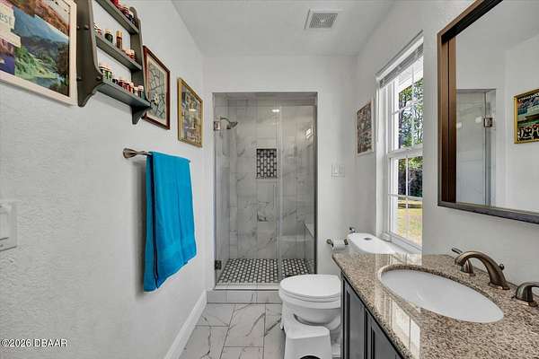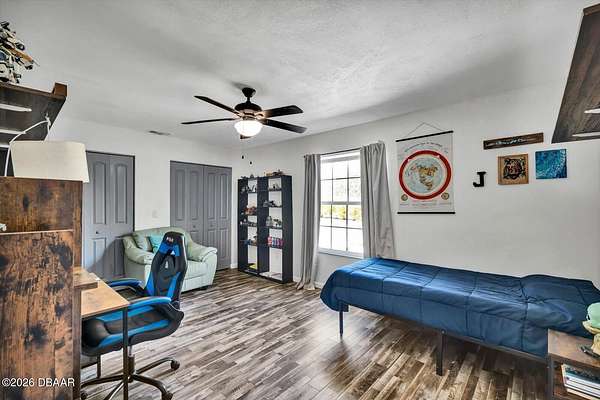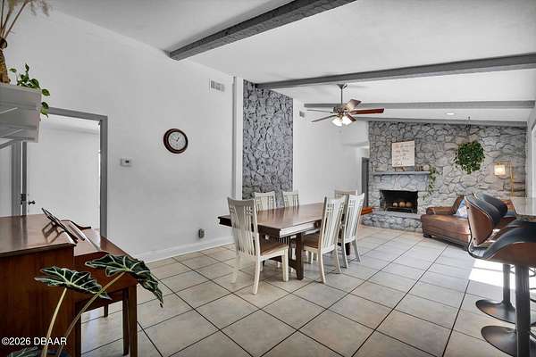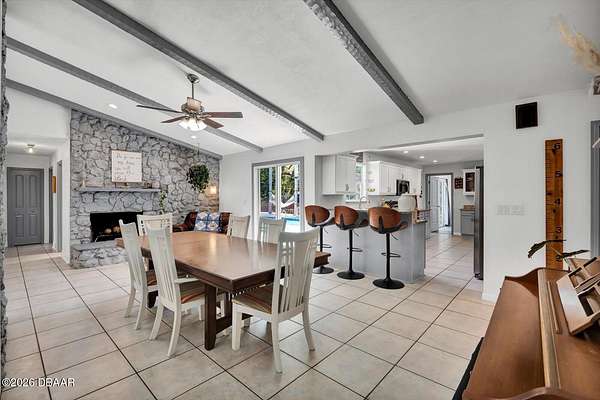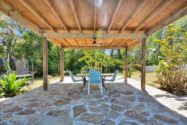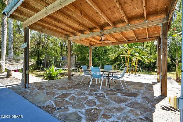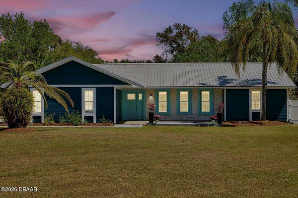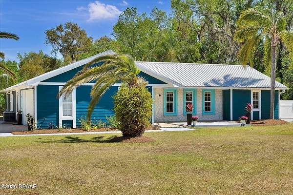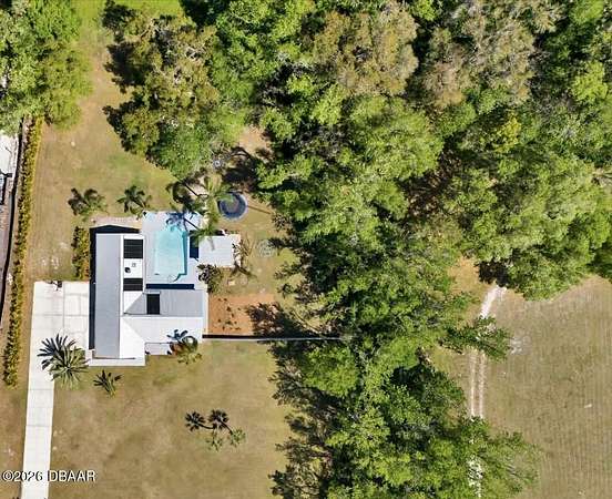 Seller closing cost credit/rate buy down available! Welcome to the highly coveted Quiet Place In The Country community! High & dry property in flood zone X, no history of flooding & no flood insurance required. This 5-bedroom 2-bath stunning pool home is just minutes to everything & offers the perfect blend of country living & modern convenience with NO HOA! This beautifully updated home has an abundance of natural light, a split floor plan & boasts a newer metal roof & air conditioning system & has been freshly painted. The fully remodeled large & open kitchen features a breakfast bar, a lovely view of the pool from the sink, crown molding, beautiful cabinets, granite countertops, a reach-in pantry & stainless appliances, including a wine cooler. The luxurious Master Suite features private pool access, a huge walk-in closet with built-in shelving & a fully remodeled bathroom with step-in tiled shower & a dual sink granite topped vanity. The dining room/family room near the kitchen features private pool access, soaring ceilings & a cozy wood burning fireplace. The fully remodeled guest bath has a tiled tub/shower, dual vanity with granite & private pool access. The backyard is a private oasis with no views of neighbors on two of the three sides & is perfect for relaxation & entertaining. The large palm tree-lined & solar heated pool sits adjacent to the spacious stone-lined covered veranda providing your shaded poolside heaven with views of the garden along with the banana, mulberry & avocado trees! There's even a private poolside outdoor shower! Behind the pool is another patio which is a peaceful & enchanting spot for watching wildlife in the jungle while relaxing in the shade of the majestic live oaks. You can even go exploring & pick oranges in the jungle next to the seasonal creek which connects to Spruce Creek. Additional features include NEW luxury vinyl plank flooring, NEW variable speed pool pump, updated lighting, fresh landscaping, dual-pane vinyl windows, Culligan water softener, security system with cameras & there is plenty of parking for all your toys. The 2 car garage includes an abundance of shelving for storage & a work bench. Zoned R1 Residential, this spacious 2.4 acre fenced & gated property allows for hobby animals, auxiliary dwellings, & home-based businesses, offering endless possibilities. It's also a perfect location minutes away from shopping, banks & dining, under 20 minutes to beaches in New Smyrna & Daytona, 15 min to Daytona Airport & under an hour to Orlando. Zoned for Spruce Creek High School-only 10 min away! Come make this dream home yours! See on MLS: List of improvements, appraisal & termite bond.