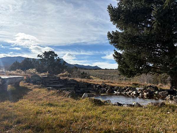 Colorado Parks & Wildlife, ideal for animals or protecting your space. On top of that, there's an RV hookup, a powered workshop, and a level site already prepared for a future shop or shed. A chicken coop is ready to go, and a decorative pond with water feature add a peaceful touch to this property.