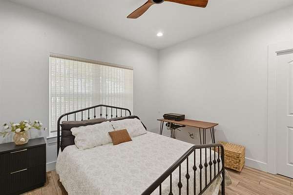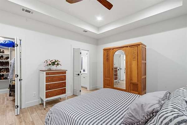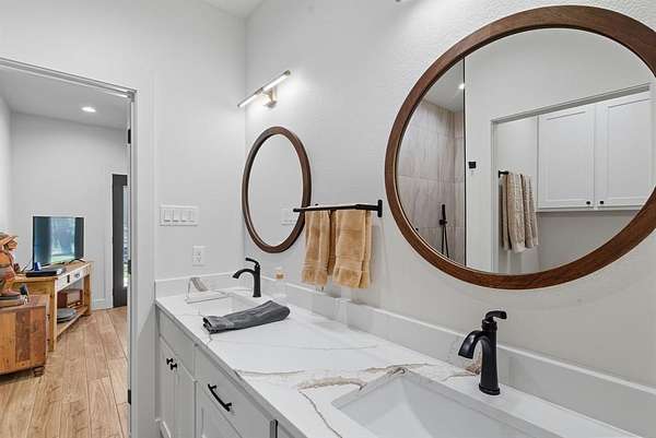 The private primary suite features coffered ceilings, abundant natural light, and a spa-inspired bath with beautiful finishes. Generously sized guest rooms provide comfort for family or visitors, and the split layout creates ideal privacy.