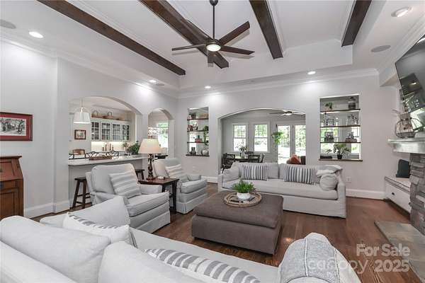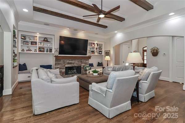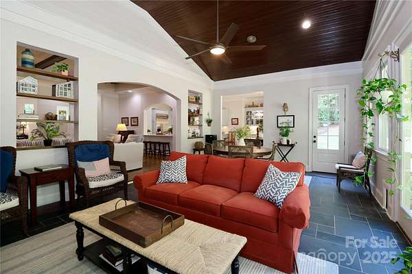 Welcome home to this stunning custom-built 4 bed, 3 bath home, set on 5.38 Acres! From the moment you step inside, you're welcomed by tall, wood beamed ceilings, hardwood flooring, a large great room and one-of-a-kind custom craftsmanship throughout. The open concept floor plan is perfect for entertaining with a chef's dream gourmet kitchen, complete with high-end appliances, huge quartz island, abundant counter & cabinet space, and exceptional design. Just off the main living area, a spacious sunroom adds abundant natural light and offers scenic views of your private wooded acreage and fenced backyard. The huge master bedroom is on the main level and features 14 ft vaulted ceilings, hardwood flooring, a sitting area, and two huge walk-in closets. The large spa like master bath has beautiful granite countertops, ceramic tile flooring, custom cabinetry & an elegantly designed tiled shower. The spacious home office offers a quiet, private workspace perfect for remote work or study. The second level offers two large bedrooms, a full bath, huge bonus room, plus a recreation room providing endless possibilities for hobbies, fitness or the perfect man cave. This home offers plenty of space for everyone. Discover the perfect blend of Rockwell's small town charm, just 15 minutes from Concord with amazing restaurants, museums, parks, shopping, aquariums, Charlotte Motor Speedway, Pfeiffer University and much more!