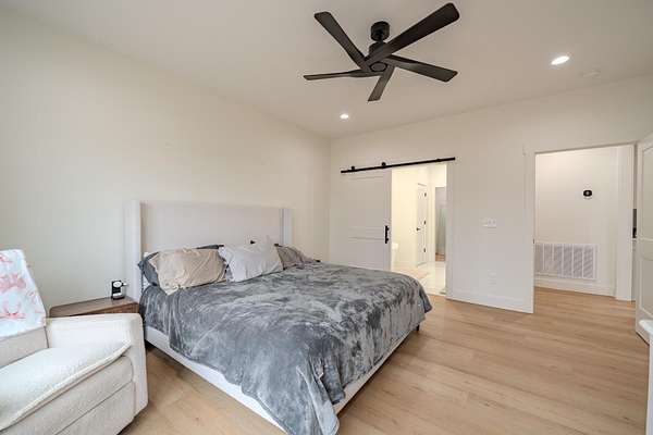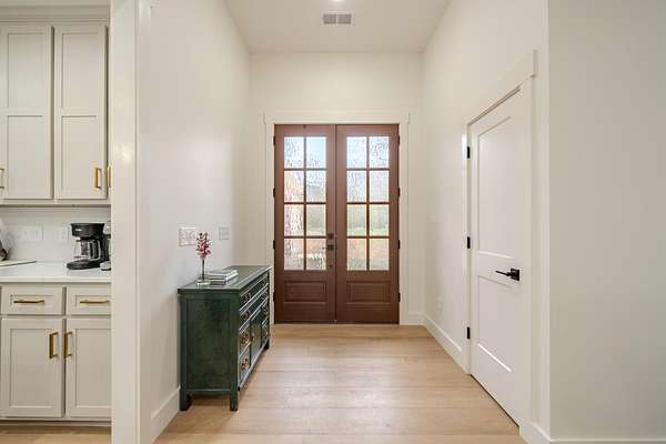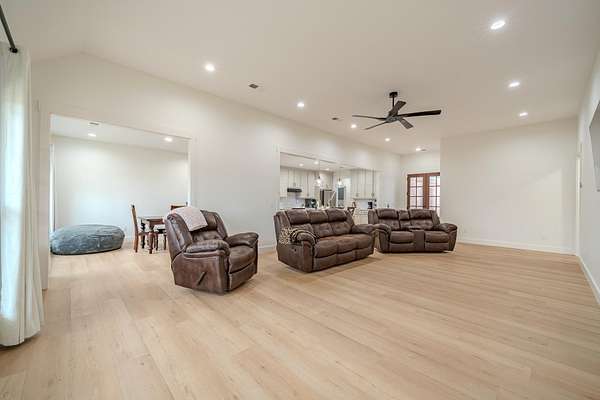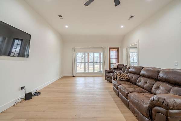 Like new construction in the highly sought-after Grand Oaks Subdivision in the Cravens Area. Completed in 2024, this beautifully crafted home offers modern design & quality finishes! Step inside to discover soaring ceilings, LVP & tile floors, custom cabinetry that adds both style & durability, large island, farmhouse sink, butler's pantry, & tankless water heater! The oversized living room is truly a standout feature, providing an incredible space for entertaining or everyday living. The split floor plan offers privacy & flexibility. The spacious primary suite features a luxurious BA, incredible walk-in closet, & direct access to the laundry room. The 2 guest BR provide comfortable accommodations, one w/its own private full BA, ideal for guests or a secondary primary suite. Additional highlights include a 2-car garage w/built-in safe room, & gorgeous covered back porch w/a stunning wood ceiling! This nearly new home combines elegance, space, & convenience in one exceptional package.