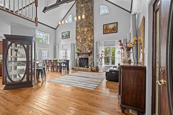 Welcome to this peaceful property at the end of a quiet cul-de-sac, offering a cozy home with a cabin-like feel, surrounded by 2.5 acres of natural beauty. With two adjacent lot parcels and mature trees throughout, the setting provides a sense of privacy and space. The home features two generously sized primary bedrooms and a wood-burning fireplace with stone accents that add warmth and character. One bedroom is upstairs and one is downstairs. Each bedroom is a primary with a full bathroom. There is a loft upstairs overlooking the living room. When entering the house, there is a sunroom and a sitting room that can be used as a flex room. Outdoor amenities include an in-ground pool, a gazebo, and a fire pit area--ideal for relaxing or entertaining. One parcel also includes a deer stand. Additional highlights include a detached 3-car garage, a second driveway, and gravel RV parking. With no HOA, there's flexibility for how the property is used or developed. USDA Loan eligible. Both adjacent parcels are already subdivided: parcel Id: 3-33-14-001.00 285 Kelli Ct Pacolet, SC 29372 & parcel Id: 3-33-14-003.00 195 Kelli Ct Pacolet SC 29372. Offering opportunities for expansion or investment. Located about a 15 minute drive from downtown Spartanburg, with easy access to Highway 176, the property combines a quiet, wooded setting with convenient connectivity. Whether you're enjoying the outdoor space, exploring the land, or simply appreciating the peaceful surroundings, this property offers comfort, versatility, and room to grow.