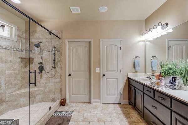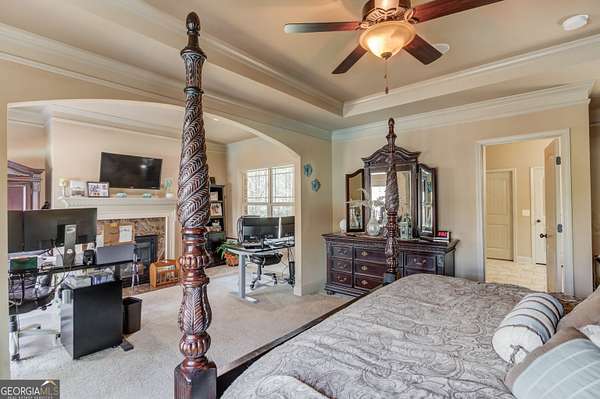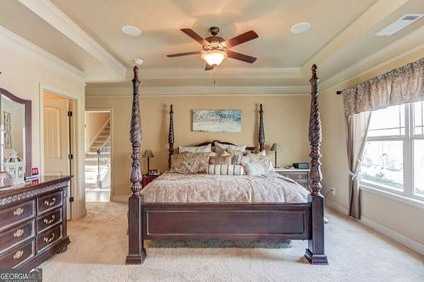 - Bookcases, Double Vanity, High Ceilings, Master On Main Level, Separate Shower, Tile Bath, Tray Ceiling(s), Vaulted Ceiling(s), Walk-In Closet(s)