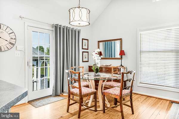 - Carpet, Ceiling Fan(s), Dining Area, Island Kitchen, Pantry, Window Treatments, Wood Floors